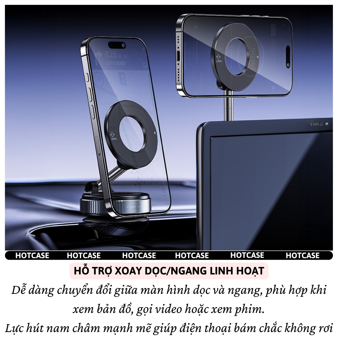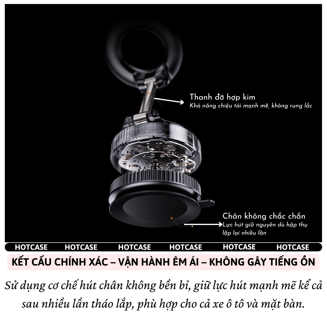 ✨Giá đỡ điện thoại từ tính Magnetic nam châm hút chân không xoay 360 độ cho xe hơi ô tô, bàn làm việc, phòng tắm hiệu Hotcase Airlock Pro Cho iPhone cho Samsung điện thoại - Hàng nhập khẩu
