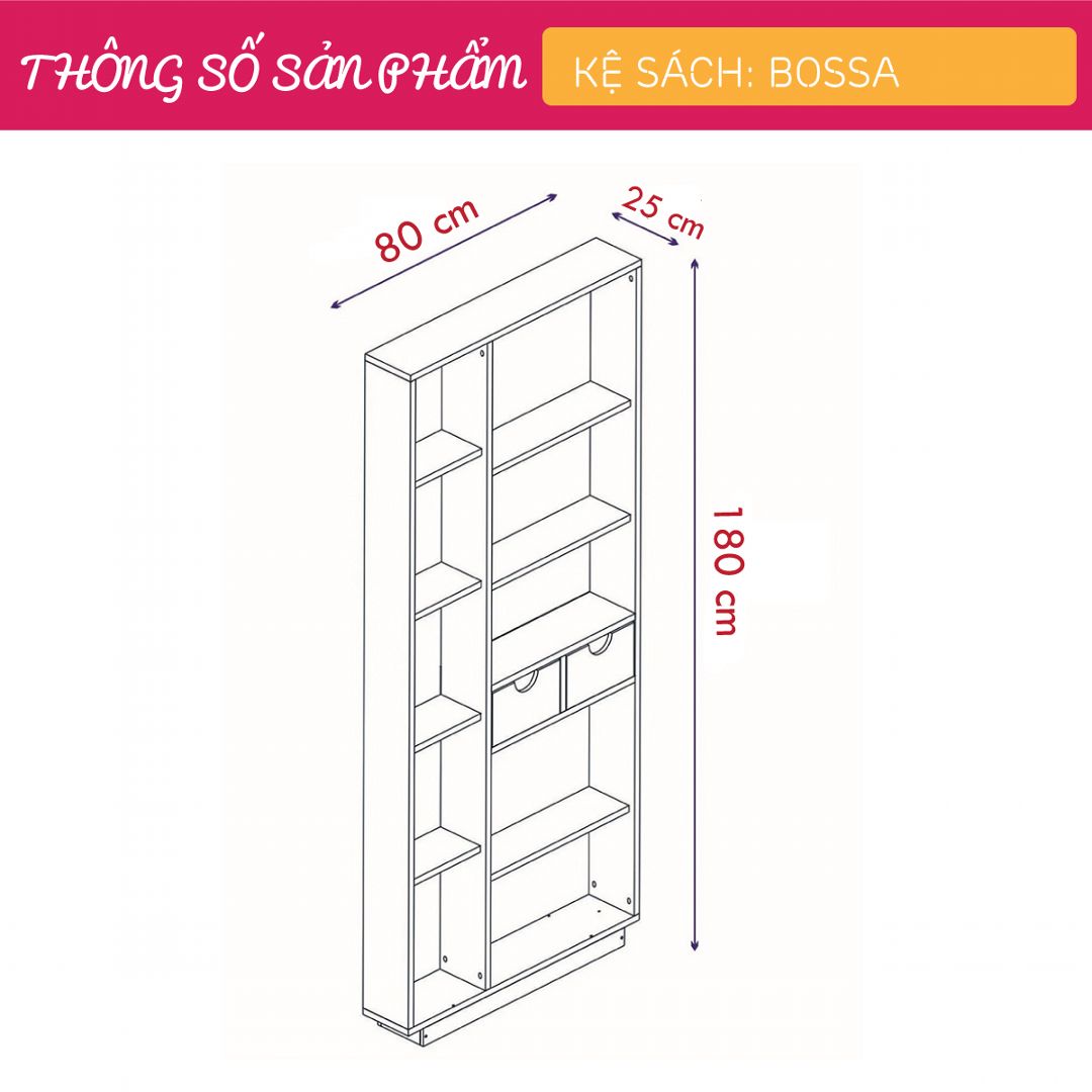 Mua tại TiktokKệ sách SMLIFE Bossa được ví như một tác phẩm nghệ thuật với phong cách đơn giản sẽ giúp bạn xắp sếp những cuốn sách một cách sành điệu và độc đáo. Kệ sách Bossa mang đến sự tinh tế, hiện đại cho phòng khách của bạn và đồng thời cung cấp một không gian lớn cho các vật dụng trang trí. Sản phẩm phù hợp cho mọi phong cách trang trí căn hộ và văn phòng làm việc. Sử dụng vật liệu ván ép công nghiệp MDF chống ẩm phủ Melamine cao cấp giúp kệ sách SMLIFE có độ bền cao, chống trầy và chống ẩm rất tốt. Bạn có thể tự lắp đặt sản phẩm dễ dàng với các phụ kiện và hướng dẫn đi kèm. ĐẶC ĐIỂM SẢN PHẨM: