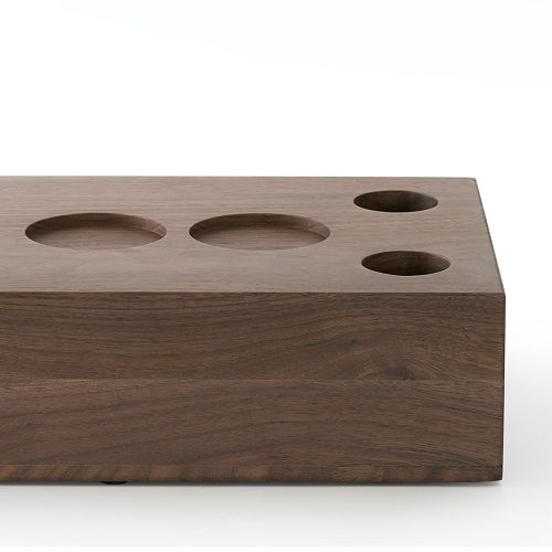 GIÁ ĐỠ TAMPER BẰNG GỖ TỰ NHIÊN PHA CÀ PHÊ MÁY ESPRESSO CAFE DE KONA Khối gỗ được làm bằng 2 loại gỗ: gỗ óc chó đen và gỗ giẻ gai châu âu.
