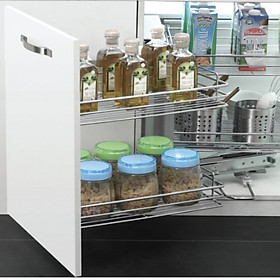 Thiết kế thông minh: Giá được bắt trực tiếp vào cánh tủ kết hợp với bộ cơ cấu chuyển động có thể đảo chiều thông minh nên khi mở cánh tủ, 2 khoang chứa được gắn với cánh tủ di chuyển theo giúp dễ dàn...