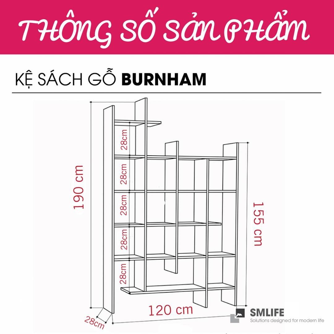 Mua tại TiktokKệ sách Burnham được ví như một tác phẩm nghệ thuật với phong cách đơn giản sẽ giúp bạn xắp sếp những cuốn sách một cách sành điệu và độc đáo. Kệ sách Burnham mang đến sự tinh tế, hiện đại cho phòng khách của bạn và đồng thời cung cấp một không gian lớn cho các vật dụng trang trí. Sản phẩm phù hợp cho mọi phong cách trang trí căn hộ và văn phòng làm việc. Sử dụng vật liệu ván ép công nghiệp MDF chống ẩm phủ Melamine cao cấp giúp kệ sách SMLIFE có độ bền cao, chống trầy và chống ẩm rất tốt. Bạn có thể tự lắp đặt sản phẩm dễ dàng với các phụ kiện và hướng dẫn đi kèm.