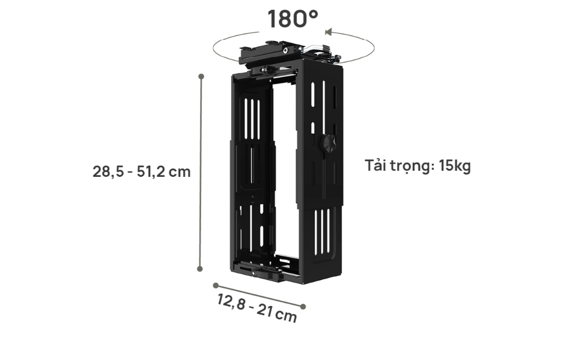 THÔNG SỐ KỸ THUẬT Thương hiệu: Upgen Tải trọng tối đa: 15 Kg Màu sắc: Đen Chất liệu: khung thép sơn tĩnh điện Kích thước: 230 x 205 x 435 mm Xoay: 180 độ Chiều ngang điều chỉnh: 128 – 210 mm Chiều cao điều chỉnh: 285 – 512 mm Giá Treo Case Computers UPGEN Giá treo Case Computers UPGEN giúp bảo vệ an toàn cho CPU của Bạn. Gắn CPU ngay dưới bàn làm việc, giữ cho CPU không bị thiệt hại do tai nạn tràn hoặc bị lật. Giá treo Case Computers UPGEN là thiết bị văn phòng thông minh phù hợp với cuộc sống hiện đại ngày nay, giúp tối ưu diện tích sàn, dễ dàng vệ sinh và mang lại sự gọn gàng cho không gian làm việc, không chỉ là giá treo – Giá treo Case Computers UPGEN là phụ kiện thông minh mà META GEAR tự hào được giới thiệu đến Quý Khách Hàng THIẾT KẾ LINH HOẠT Thiết kế thay đổi kích thước với các khóa cài linh hoạt, Giá treo Case Computers UPGEN có khả năng mở rộng ra theo chiều ngang và chiều cao đáp ứng hầu hết các kích cỡ CPU thông thường Giá treo Case Computers UPGEN là một giải pháp bảo vệ an toàn và tối ưu diện tích cho góc làm việc với tính năng có thể điều cỉnh xoay lên đến 180 độ linh hoạt cho người dùng ở bất kỳ góc độ nào MÓC KHÓA KHOA HỌC Móc khóa treo khoa học giúp Bạn dễ dàng thao tác sau khi cố định CPU với Giá treo Case Computers UPGEN giúp cho CPU của bạn và bàn liệu một khối tránh rủi ro đứt dây, gãy đầu cổng kết nối khi bạn sơ ý di chuyển độ cao bàn. Ngoài ra, Giá treo Case Computers UPGEN giúp cho không gian bên dưới bàn được gọn gàng, thông thoáng và có thẩm mỹ hơn CHẤT LIỆU CAO CẤP Giá treo Case Computers UPGEN được chế tạo bằng hợp kim thép chịu lực, chắc chắn được mạ tĩnh điện theo công nghê cao với đặc tính chống oxi hóa tốt. CHỊU LỰC TỐT – DỄ DÀNG LẮP ĐẶT Giá treo Case Computers UPGEN có thể dễ dàng lắp ráp tại nhà, tính linh hoạt lắp đặt bằng nhiều hình thức như dưới gầm bàn, tường, vách chắc chắn chịu tải lên đến 15kg.