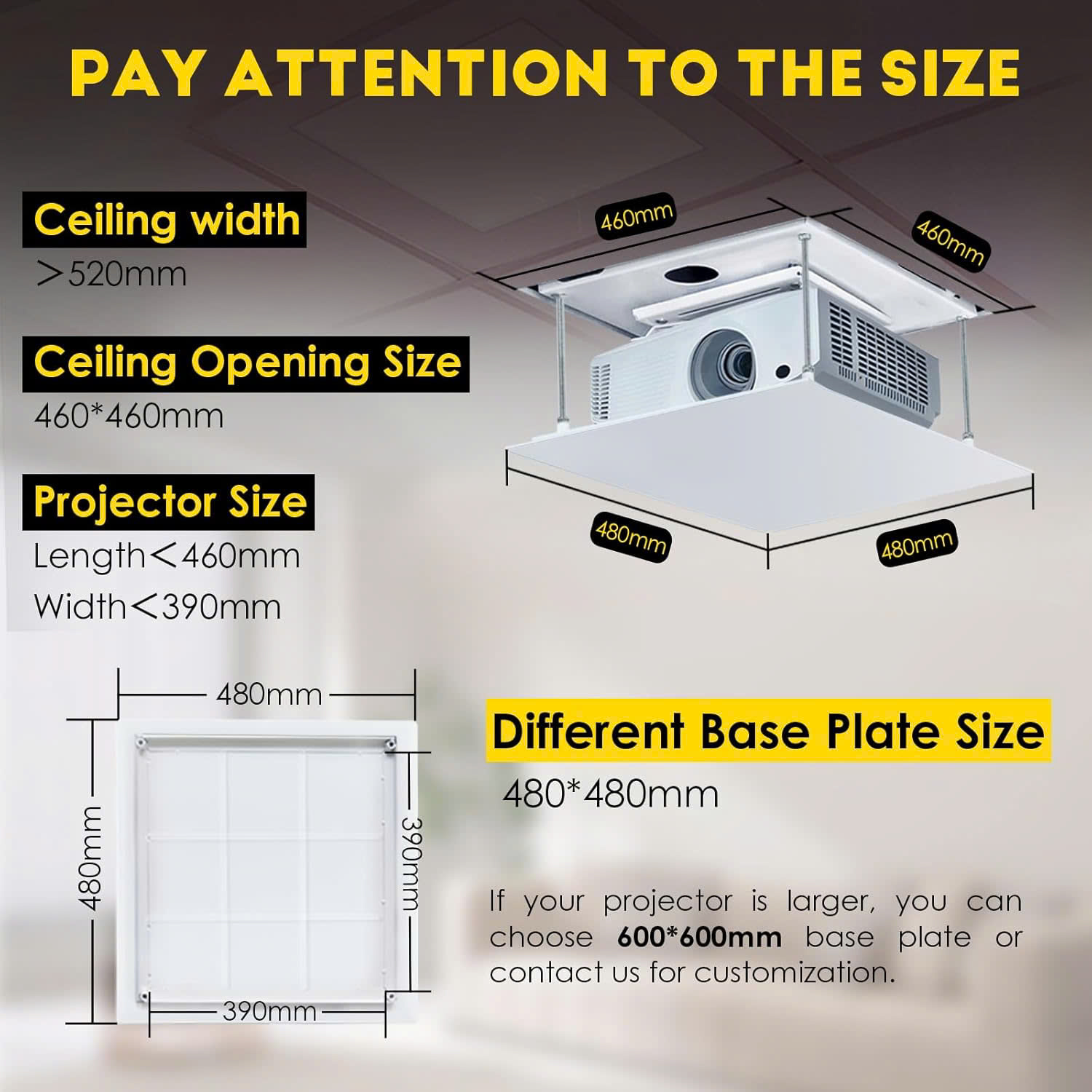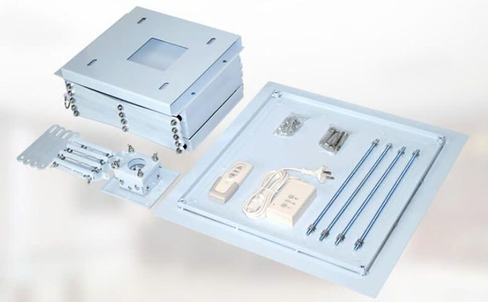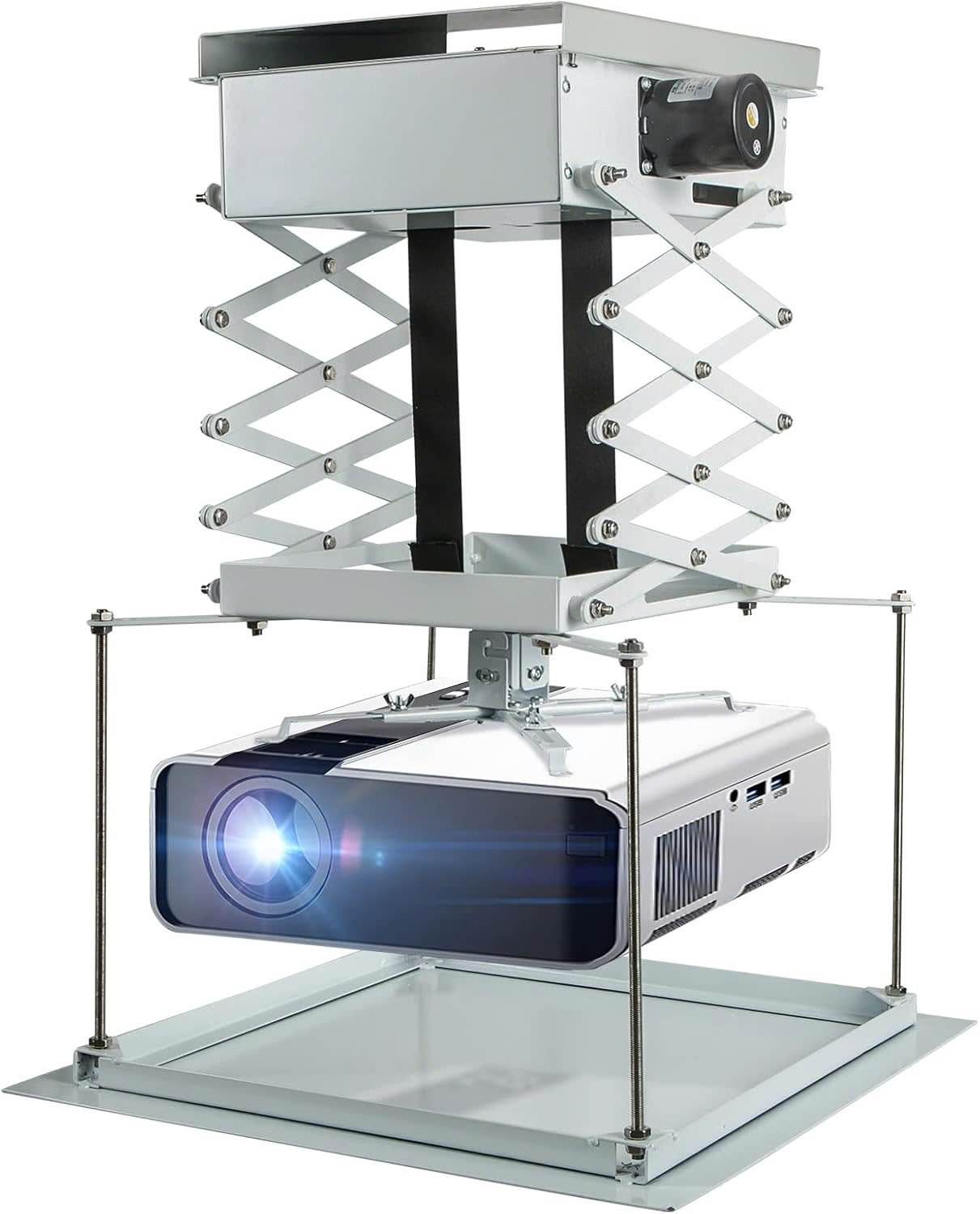 Giá treo điện chuyên dùng dành cho máy chiếu, được sử dụng rất phổ biến trong các công trình mang tính chuyên nghiệp, trang trọng,  đa năng. Giá treo được lắp âm trần được hạ xuống khi máy chiếu cần sử dụng, phù hợp ở những nơi như nhà hàng, phòng triển lãm, hội nghị, văn phòng đa năng,. .   Vật liệu: Làm bằng vật liệu thép chất lượng cao; Với hệ thống kiểu cắt kéo và dây đai an toàn kép. Kiểm soát lên xuống  hiệu suất ổn định Tubular motor: Vận hành bằng motor ống, chịu lực cao, bền, êm ái. Tự động dừng hoạt động khi quá tải, remote điều khiển vô tuyến rất nhạy. Kết nối với máy chiếu: Máy chiếu được lắp dể dàng vào giá treo, góc quay 360°, điều chỉnh hộc chứa máy chiếu phù hợp cho từng máy. Đa dụng – nhiều chủng loại Giá treo điện điều khiển từ xa, kết cấu thép không rỉ với đai an toàn kép, kiểm soát vận hành ổn định, tinh chỉnh điểm dừng chính xác, lắp đặt và vận hành dể dàng, nhanh chóng.