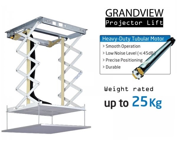 Giá treo điện âm trần được sử dụng để gắn máy chiếu cố định lên trần, với ưu điểm của khung treo điện tử, cho phép người dùng linh hoạt điều chỉnh các chức năng của máy chiếu thông qua điều khiển thông minh từ xa.