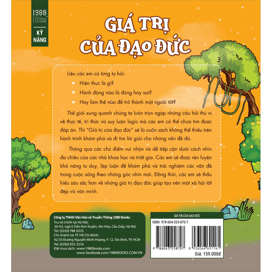 Cuốn sách “Giá trị của đạo đức” sẽ đồng hành cùng các em trên hành trình khám phá và đi tìm lời giải cho những thắc mắc này. Thông qua góc nhìn đa dạng, đầy thú vị của các triết gia, nhà khoa học được diễn giải ngắn gọn những đầy xúc tích, các em sẽ hiểu rõ hơn từng khía cạnh trong cuộc sống. Cùng với các chủ điểm gần gũi, quen thuộc với cuộc sống thường ngày, các em sẽ phát huy được khả năng tư duy, lập luận và khám phá cuộc sống theo những hướng mới. Đồng thời, cuốn sách cũng giúp các em thấu hiểu hơn về những giá trị đạo đức tốt đẹp giúp xây dựng và phát triển xã hội ngày càng văn minh