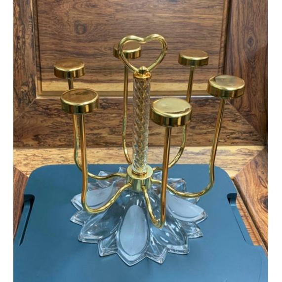 ✨Giá úp ly cốc Inox mạ vàng đế thủy tinh vàng