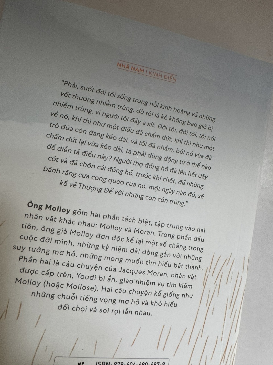 Ông Molloy là tác phẩm với hai phần tách biệt, tập trung vào hai nhân vật khác nhau: Molloy và Moran. Trong phần đầu tiên, ông già Molloy đơn độc kể lại một số chặng trong cuộc đời mình, những kkyr niệm dài dòng gắn với những suy tưởng mơ hồ, những mong muốn bất thành. Trong khi đó, phần còn lại là câu chuyện của Jacques Moran, nhân vật được cấp trên giao nhiệm vụ tìm kiếm Molloy. Và cứ thế, câu chuyện của hai nhân vật cứ đan xen vào nhau tạo thành một chuỗi tiếng vọng mơ hồ.