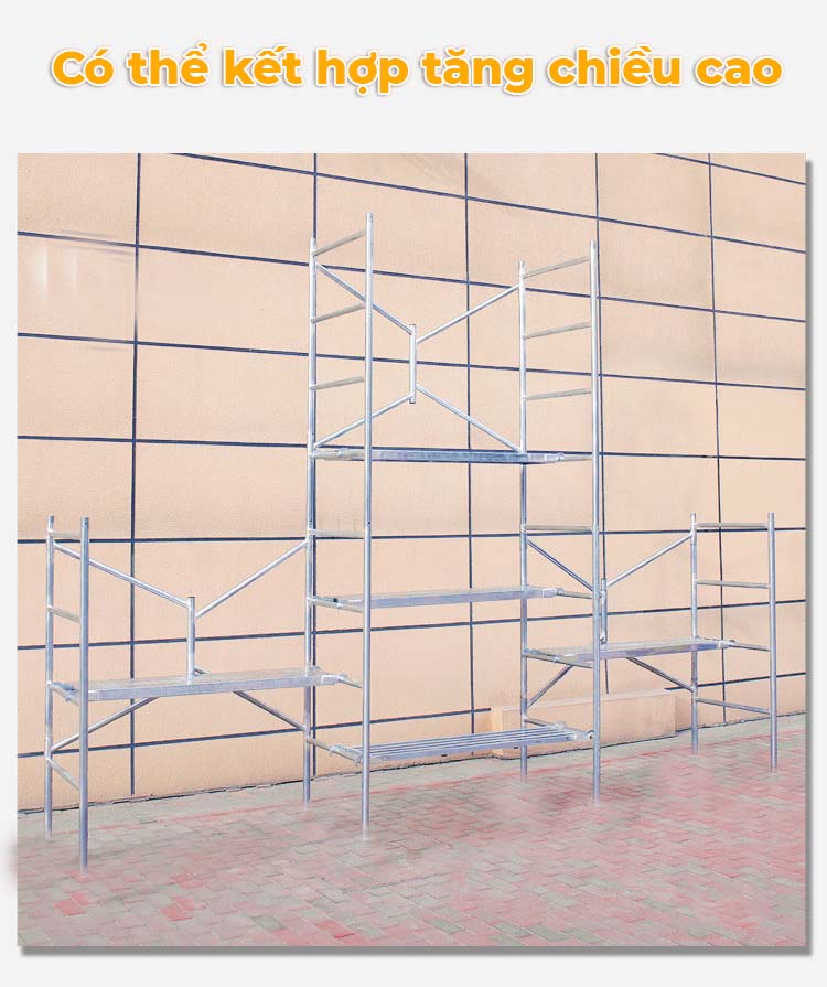 Điểm đặc biệt có thể chồng 2 giàn giáo lên nhau ( chỉ chồng duy nhất lên 1 giàn để đảm bảo an toàn )