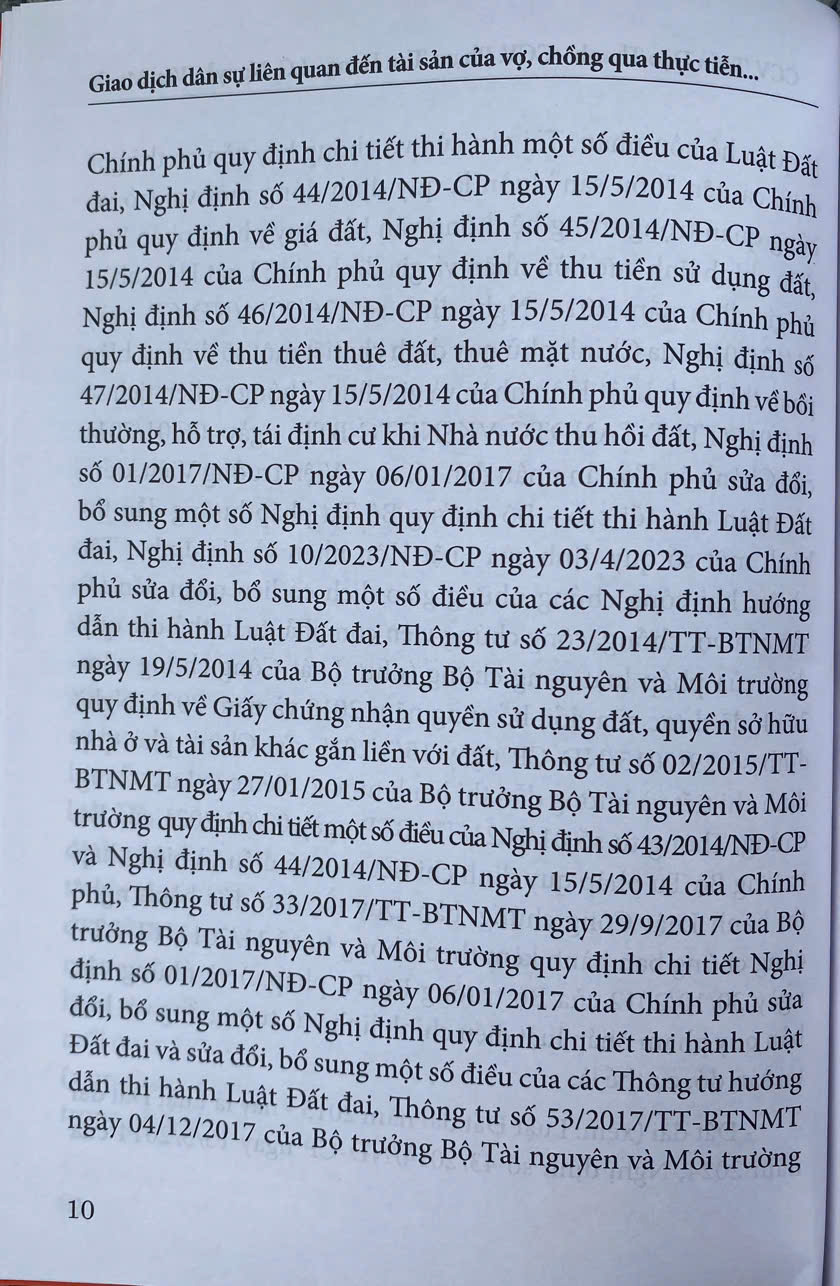 Nhằm cung cấp cho bạn đọc những quy định của pháp luật thực định xoay quanh mối quan hệ tài sản giữa người vợ và người chồng - một mối quan hệ tài sản gắn chặt với quan hệ nhân thân, cũng như một số vấn đề pháp lý mà công chứng viên cần quan tâm khi công chứng những văn bản liên quan trực tiếp hay gián tiếp đến tài sản của vợ chồng, Nhà xuất bản Tư pháp xuất bản cuốn: “Giao dịch dân sự liên quan tới tài sản của vợ, chồng qua thực tiễn hành nghề công chứng” của Công chứng viên Tuấn Đạo Thanh, Công chứng viên Phạm Thu Hằng và Luật gia Nguyễn Văn Mạnh.