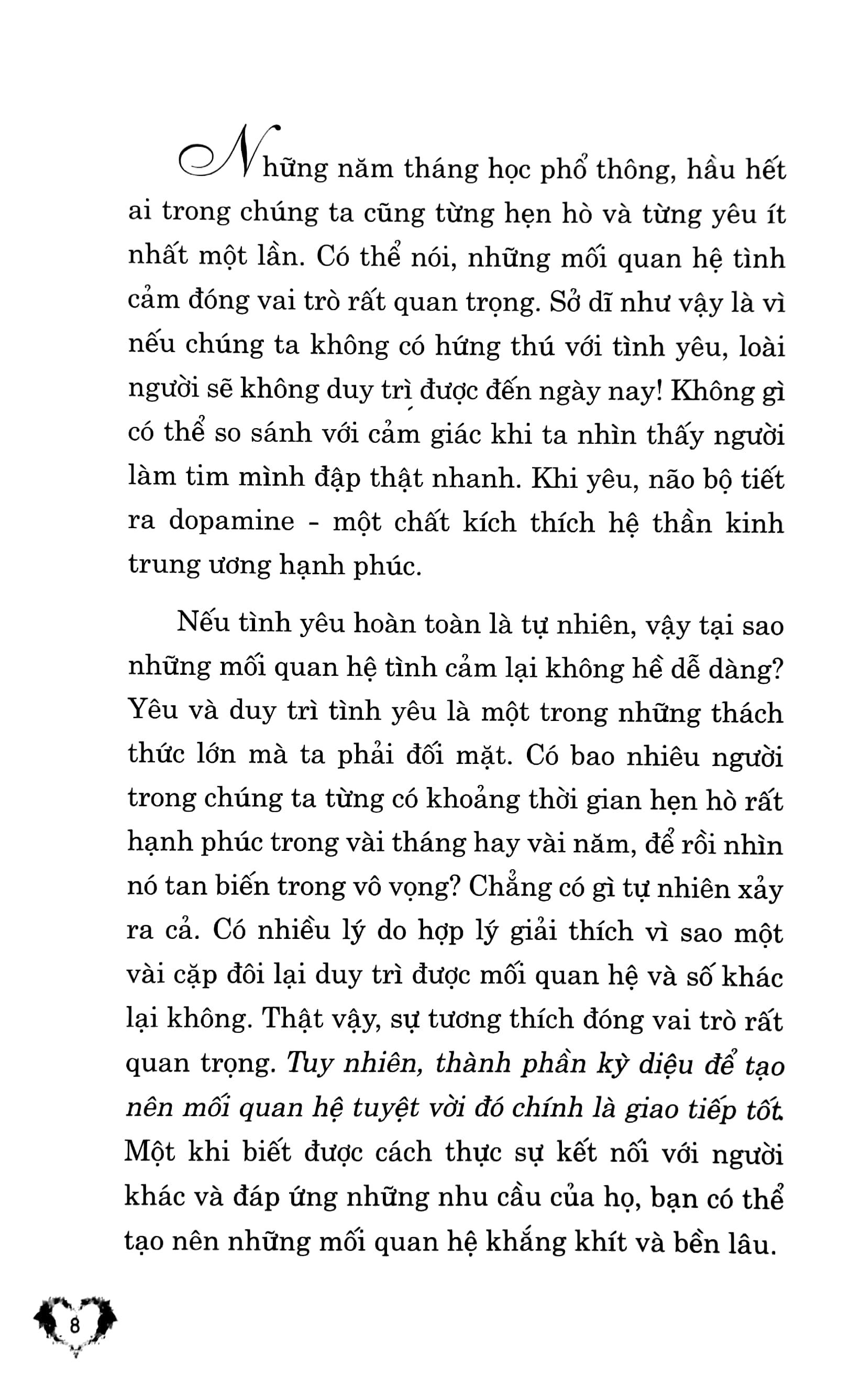 Hầu hết ai trong chúng ta cũng từng hẹn hò và từng yêu ít nhất là một lần. Nếu tình yêu hoàn toàn là tự nhiên, vậy tại sao việc duy trì những mối quan hệ tình cảm lại không hề dễ dàng? Có bao nhiêu người trong chúng ta từng có khoảng thời gian hẹn hò rất hạnh phúc trong vài tháng hay vài năm, để rồi nhìn nó tan biến trong vô vọng?