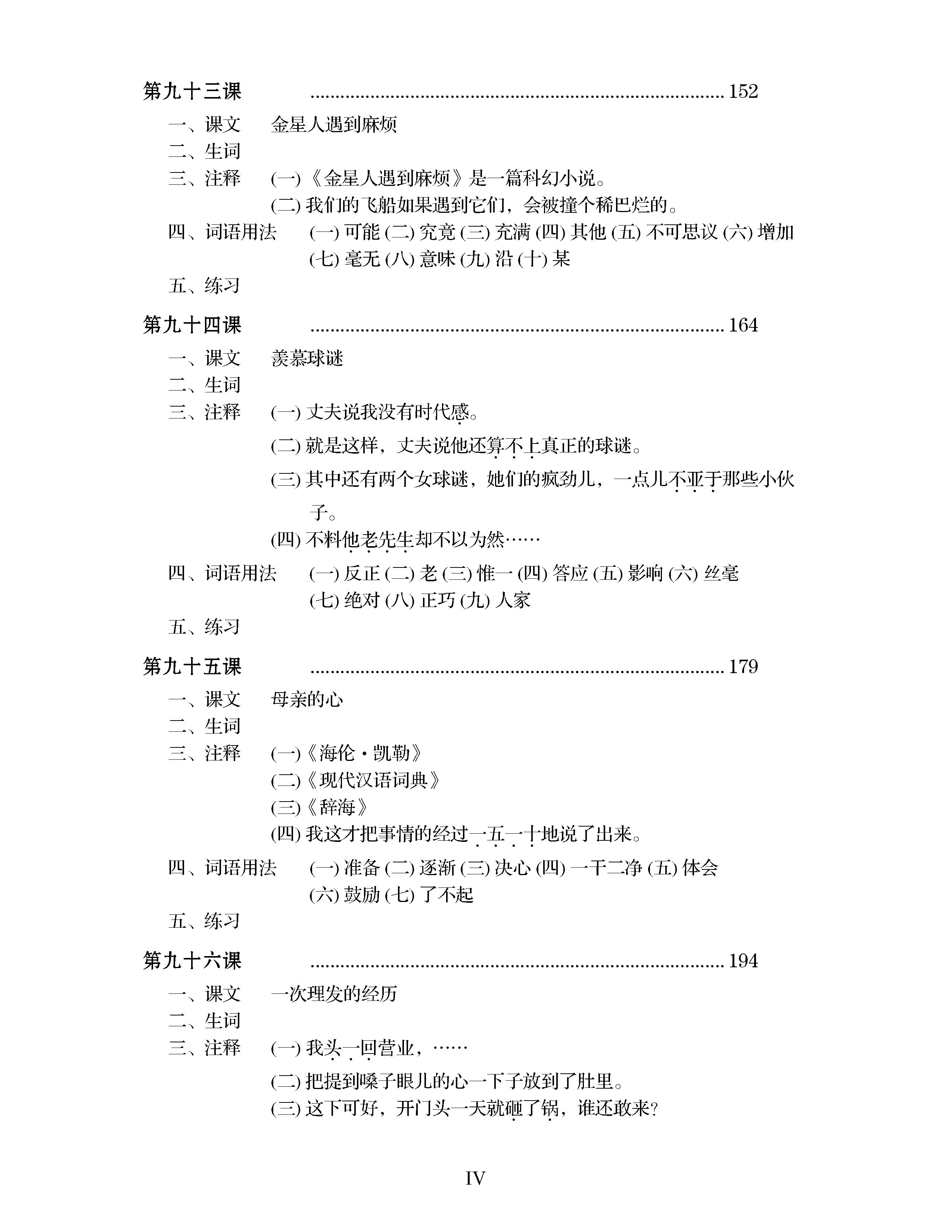 Giáo trình gồm 4 cuốn, mỗi cuốn 10 bài, tổng 40 bài. Mỗi bài tương ứng với một chủ điểm giao tiếp gần gũi, thiết thực. Đây là bộ giáo trình Hán ngữ mới nhất,