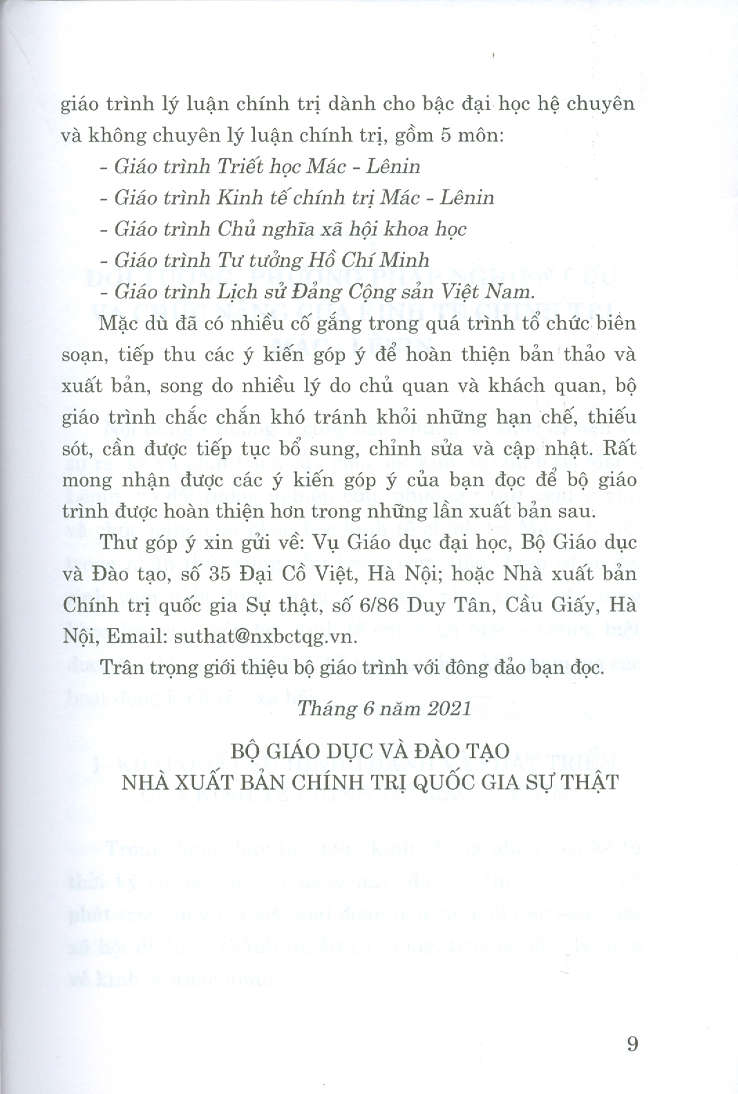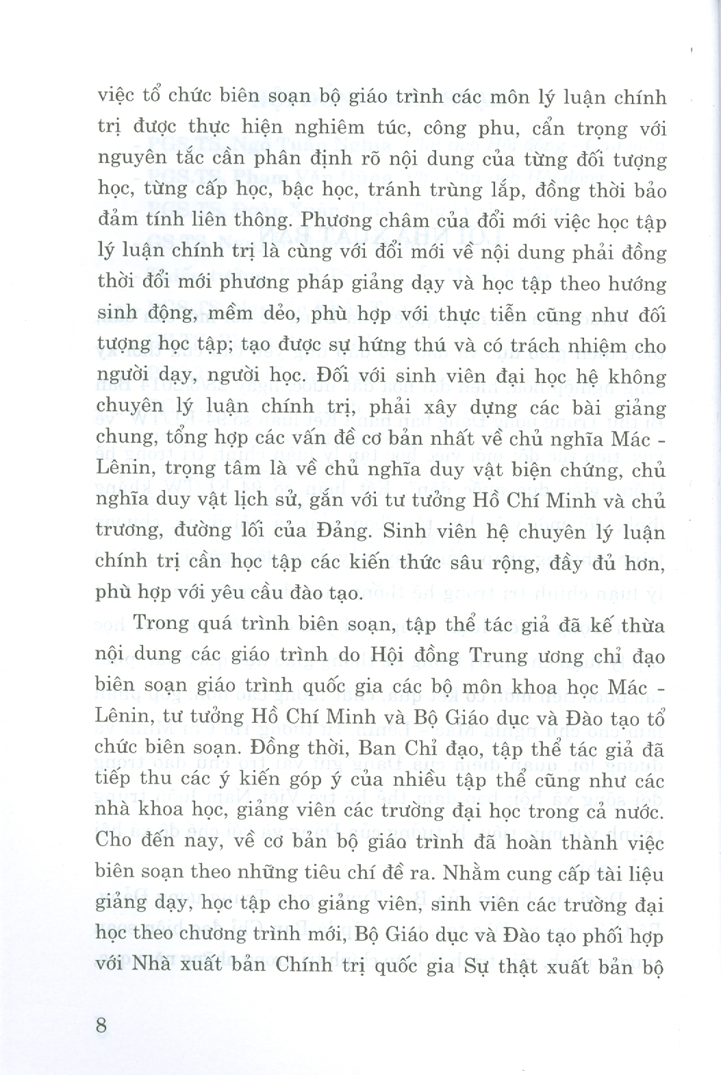 Bộ giáo trình lý luận chính trị gồm 5 cuốn dành cho bậc đại học hệ không chuyên lý luận chính trị. Bộ sách là tài liệu giảng dạy, học tập cho giảng viên, sinh