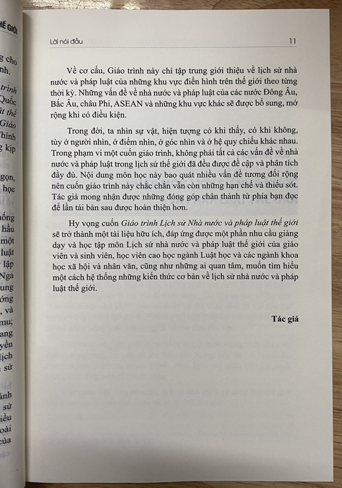 Giáo trình sẽ đáp ứng được một phần nhu cầu giảng dạy và học tập môn Lịch sử nhà nước và pháp luật thế giới của giáo viên và sinh viên, là tài liệu bổ ích cho tất cả những sinh viên, học viên cao học ngành luật học, các ngành khoa học xã hội và nhân văn, cũng như những ai quan tâm, muốn tìm hiểu một cách hệ thống những kiến thức cơ bản về lịch sử nhà nước và pháp luật thế giới.