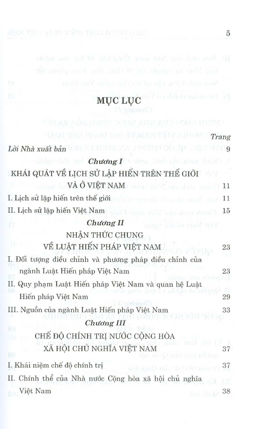 Mục lục: Chương 1: Những vấn đề cơ bản về luật hiến pháp. Chương 2: Hiến pháp và lịch sử lập hiến Việt Nam. Chương 3: Chế độ chính trị. Chương 4: Chế độ kinh
