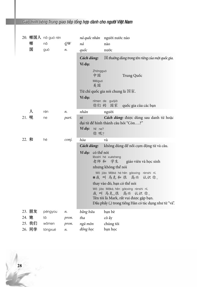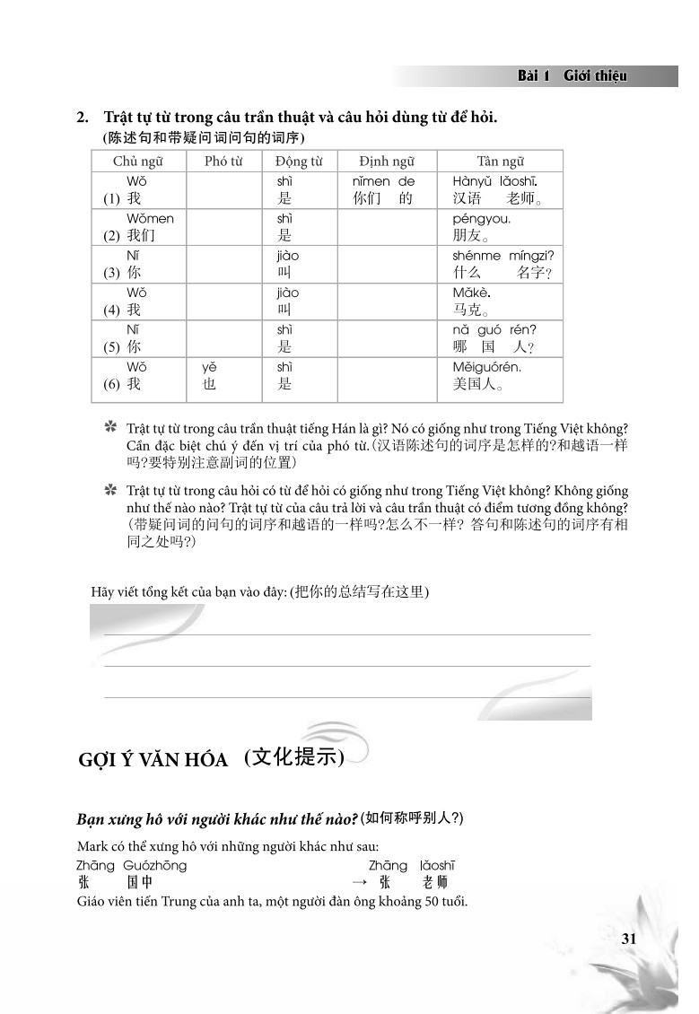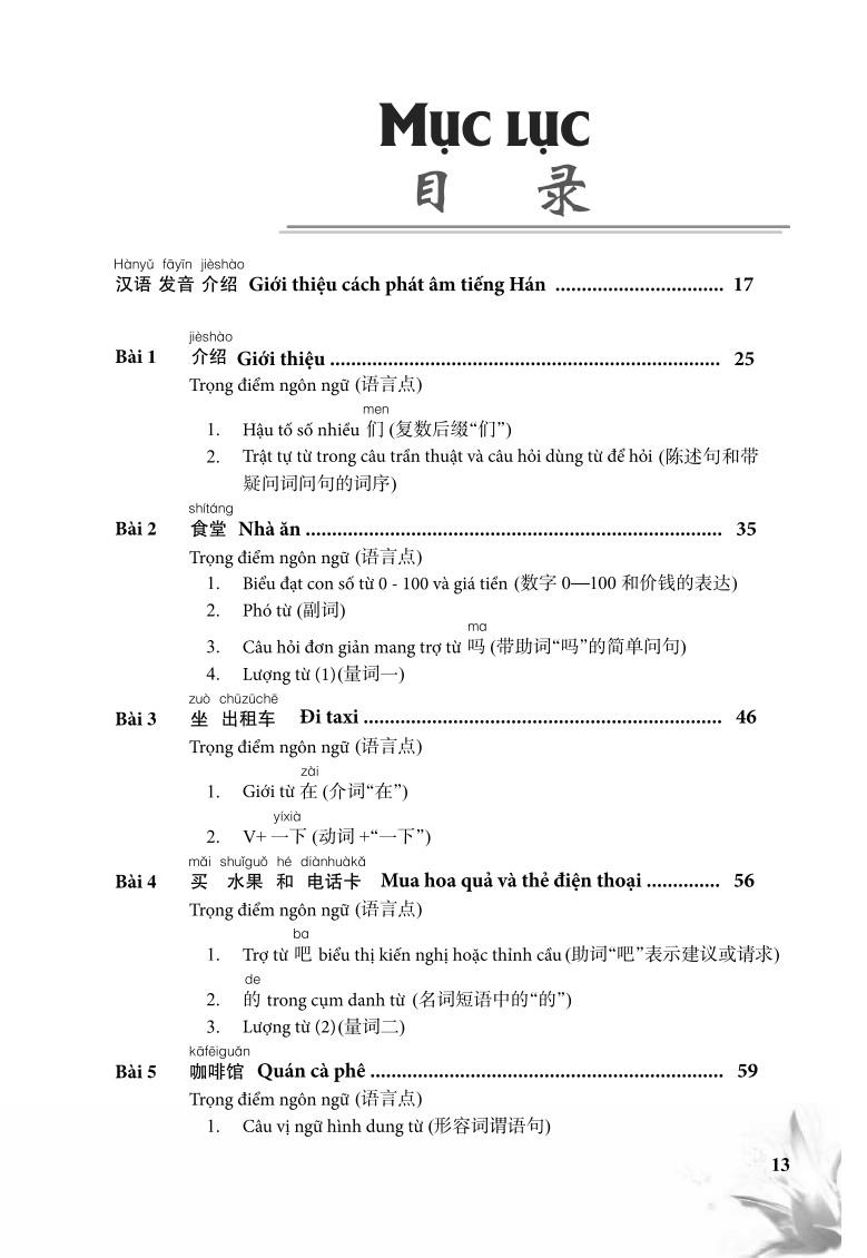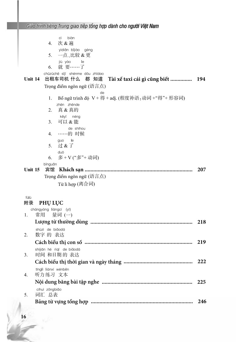 Giáo trình tiếng Trung Giao tiếp tổng hợp dành cho người Việt Nam Cuốn sách Giáo Trình Tiếng Trung Giao Tiếp Tổng Hợp Dành Cho Người Việt Nam có 15 bài, mỗi bài gồm: