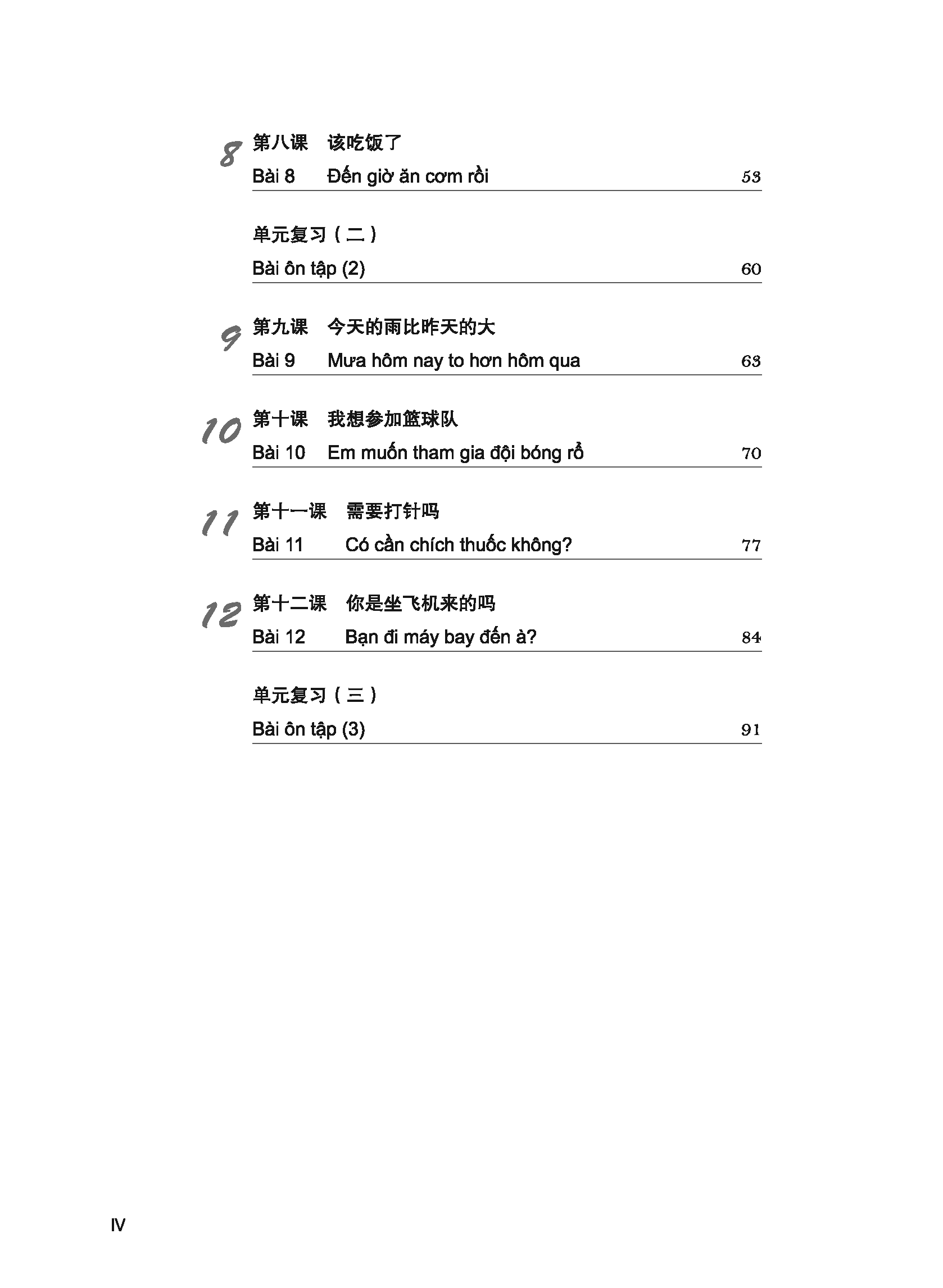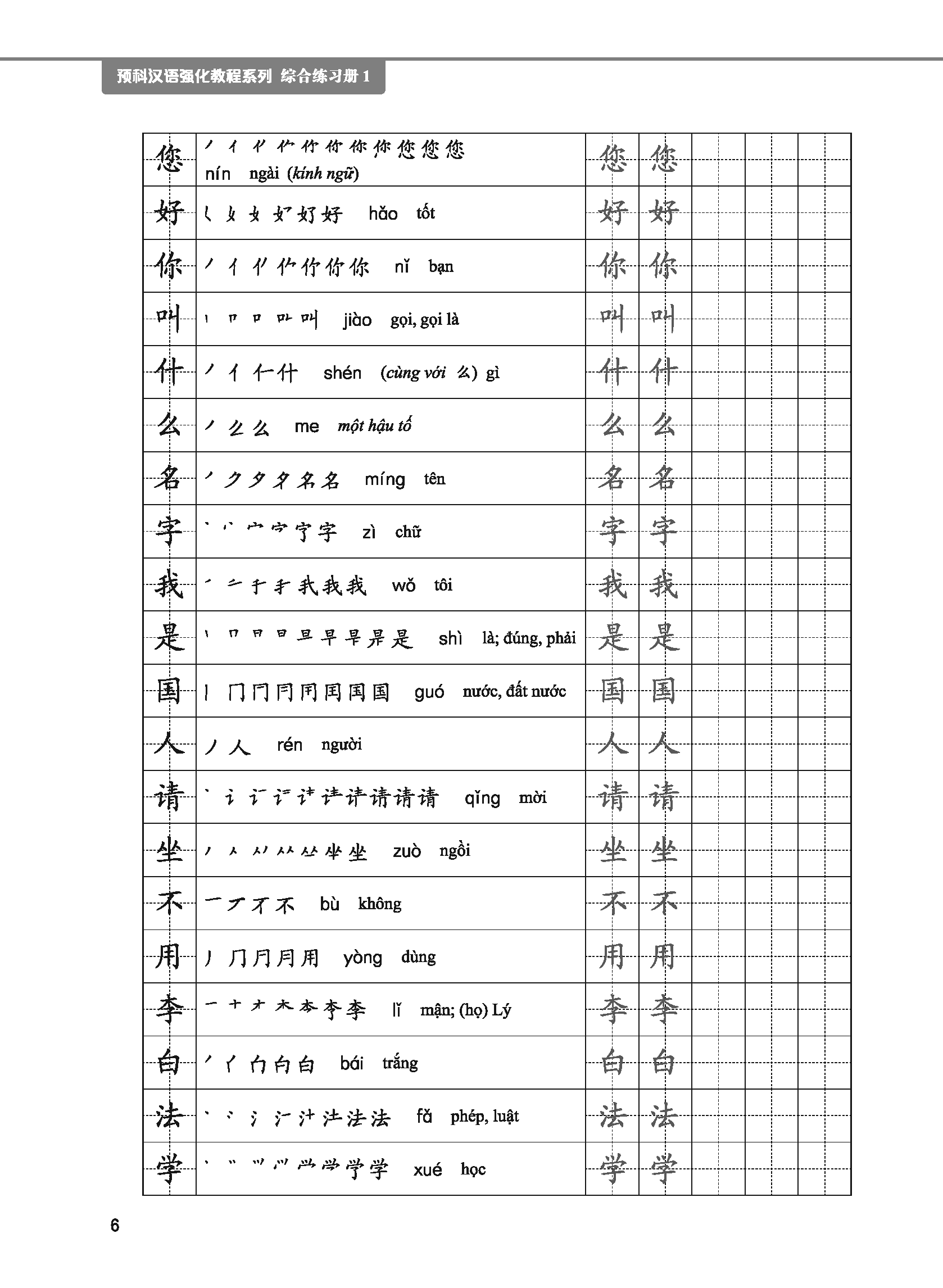 Bộ giáo trình này bao gồm 6 quyển Sách Bài học tổng hợp, 6 quyển Sách Bài tập tổng hợp. Bài học và Bài tập phối hợp với nhau, mỗi quyển 16 bài. Giáo trình tuân thủ nghiêm ngặt yêu cầu của “Đề cương thi HSK” và đề cương “Kỳ thi tốt nghiệp giáo dục dự bị đại học dành cho lưu học sinh chính quy du học tại Trung Quốc do chính phủ Trung Quốc cấp học bổng”, sắp xếp cụ thể như sau: