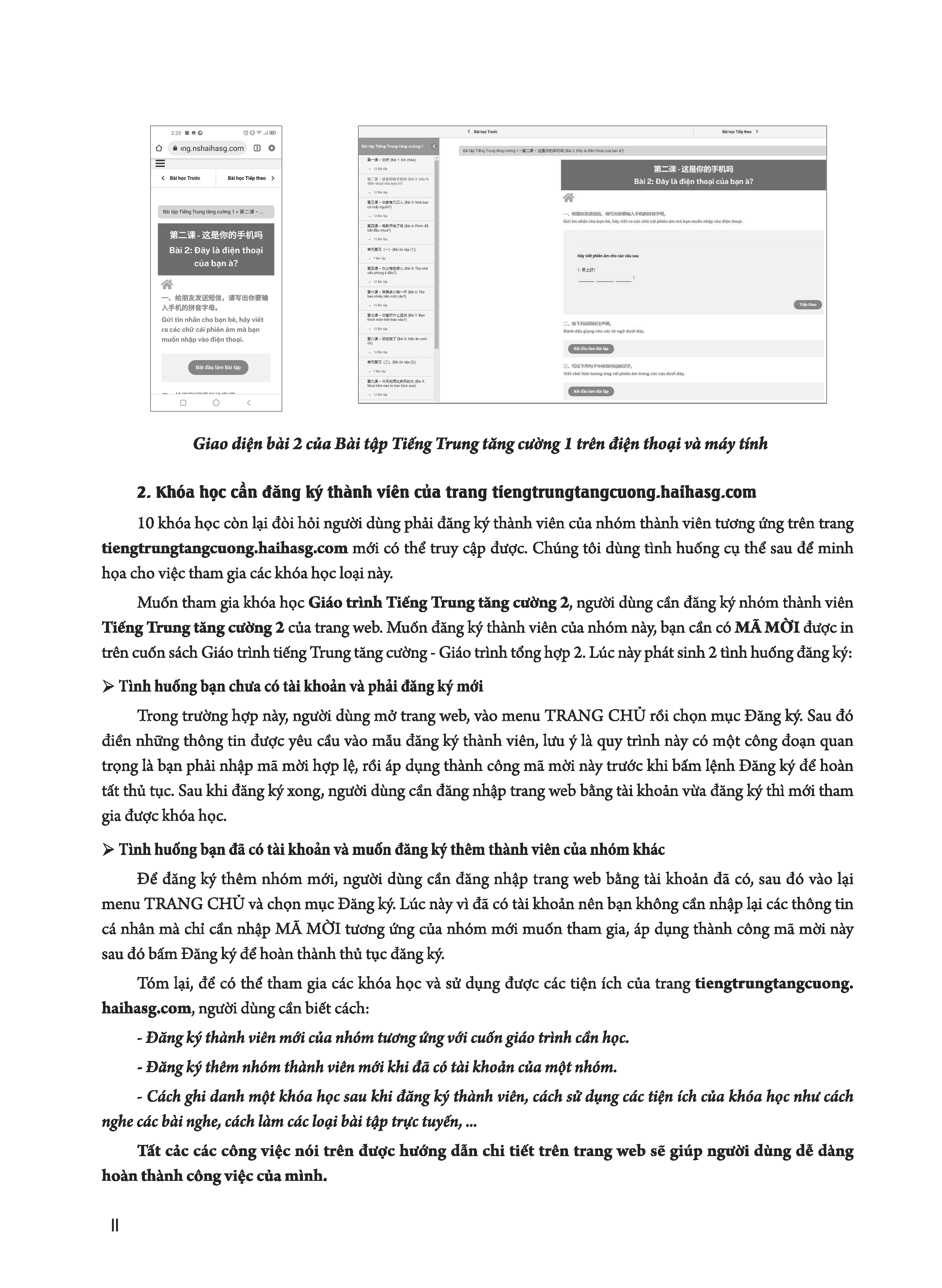 - Nội dung giáo trình bám sát thực tiễn xã hội hiện đại. Người học có thể học nhiều từ vựng, mẫu câu liên quan đến các chủ đề của xã hội như mạng xã hội Wechat, mua bán trực tuyến; thanh toán di động; Bảo vệ môi trường