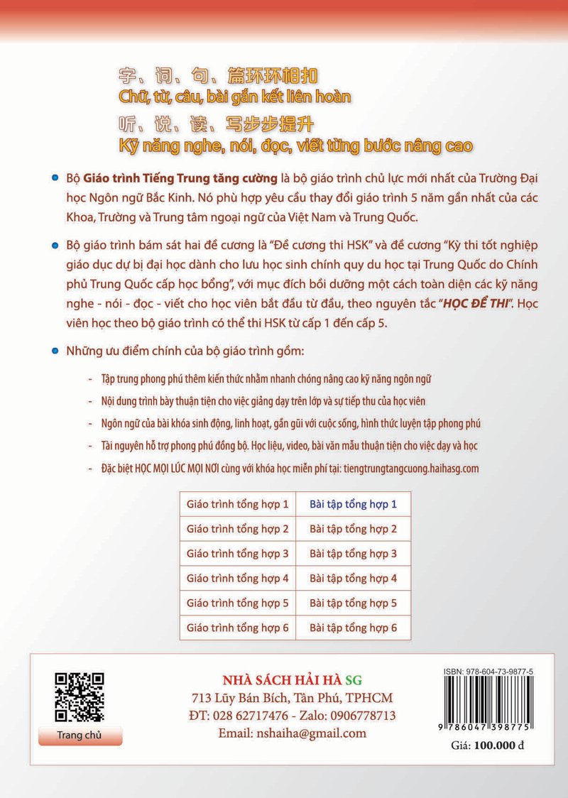 (Tặng kèm Khoá học trực tuyến) Sách bìa mềm, khổ 20,5x28,5cm, 112 trang, giấy trắng đẹp. Bộ Giáo trình Tiếng Trung tăng cường là bộ giáo trình chủ lực mới nhất của Trường Đại học