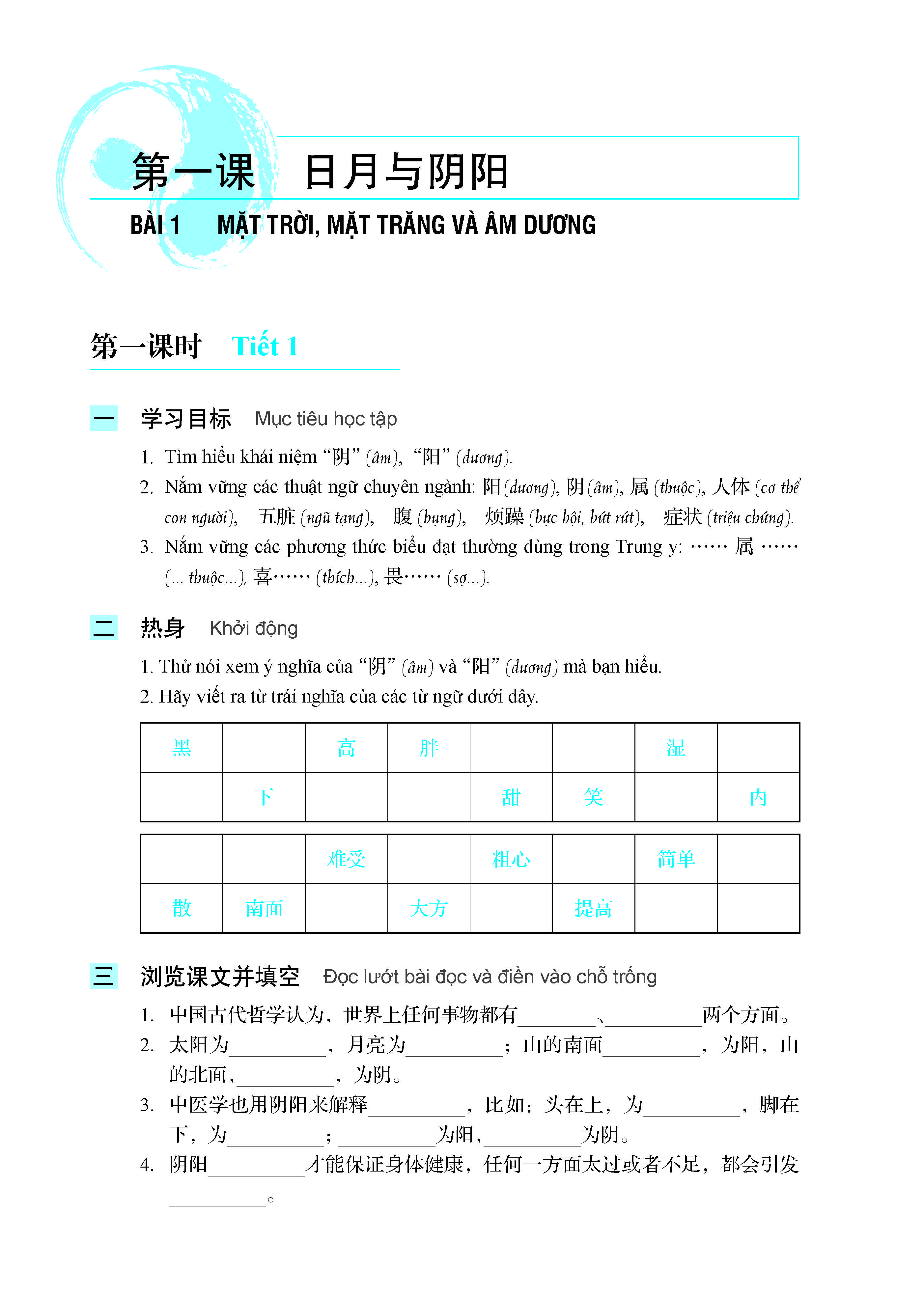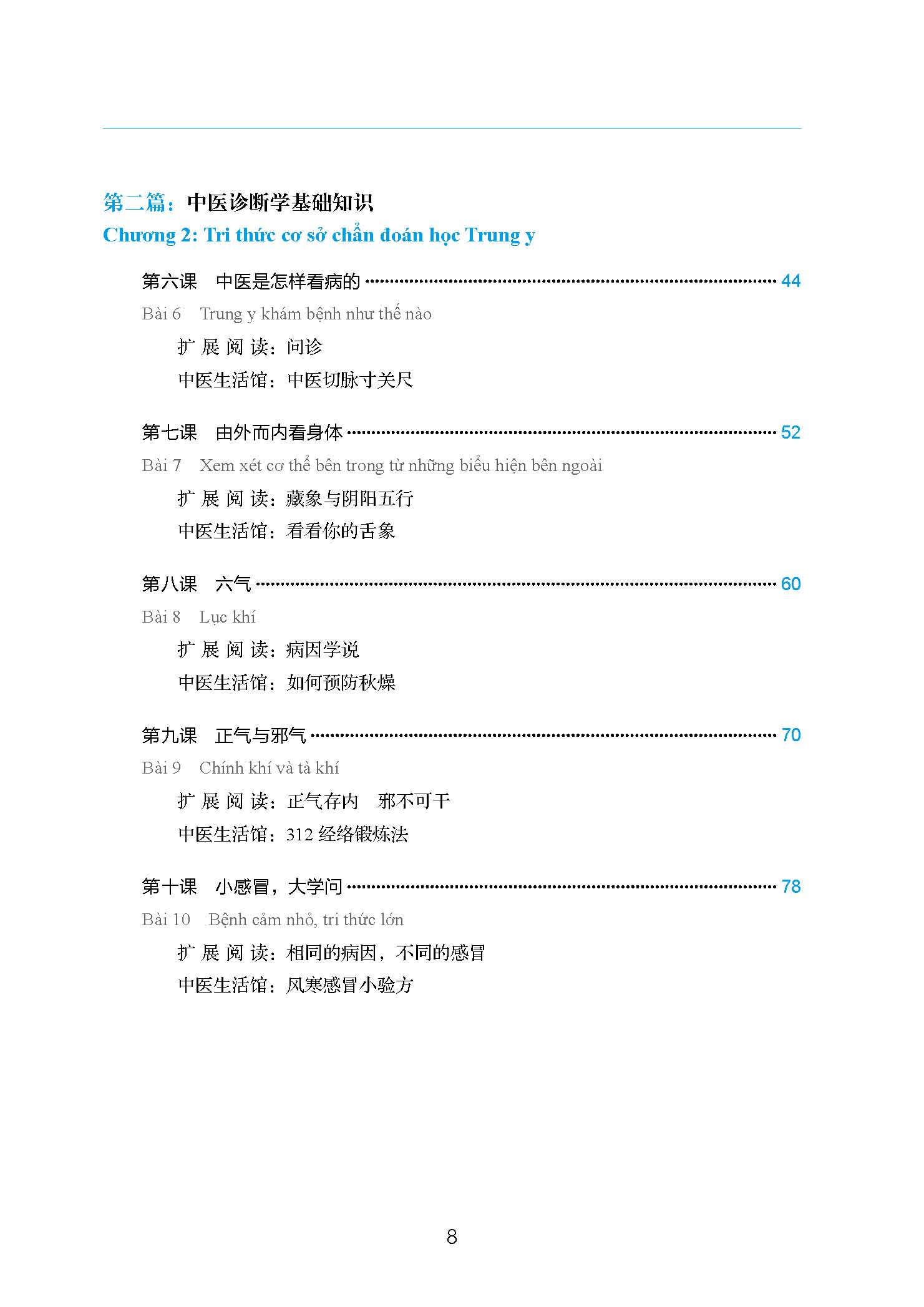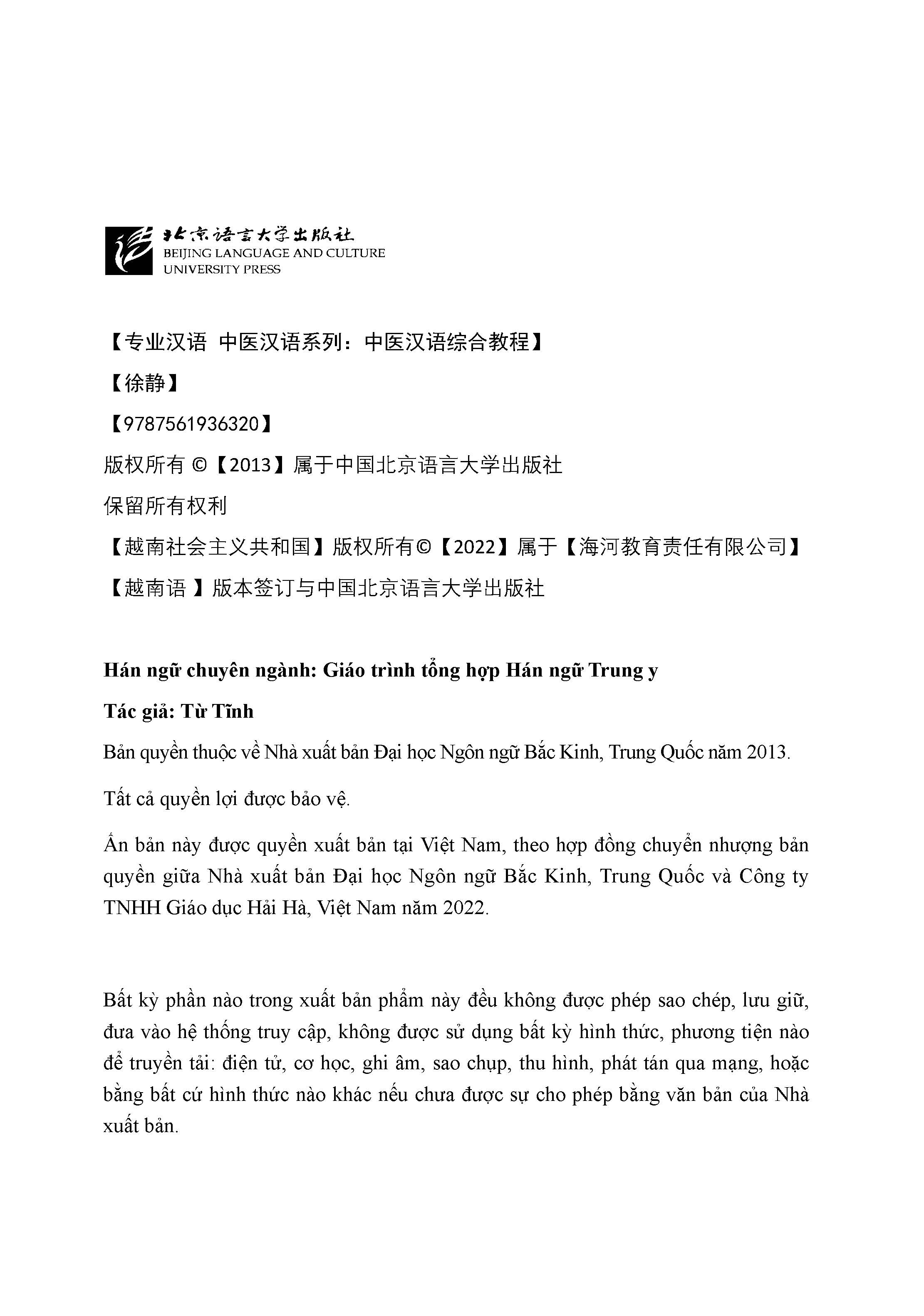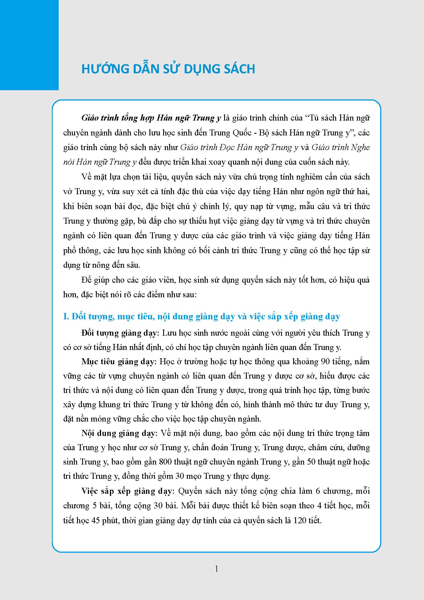 Đây là bộ giáo trình cơ bản của Trung y, kết hợp việc giảng dạy từ ngữ tiếng Hán và tri thức chuyên ngành Trung y dược từ nông đến sâu.