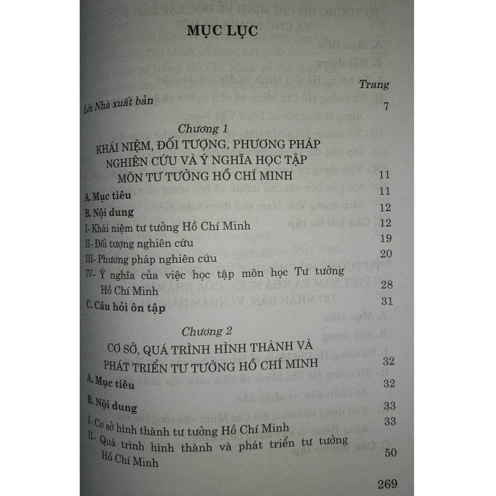 Các chương còn lại gồm các nội dung: Tư tưởng Hồ Chí Minh về độc lập dân tộc và chủ nghĩa xã hội; Tư tưởng Hồ Chí Minh về Đảng Cộng sản