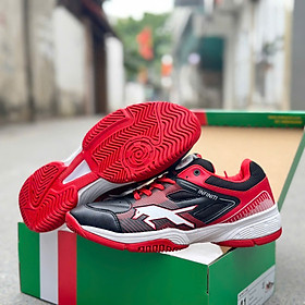 Giày Cầu Lông Mới Nhất Đa Năng Trắng Sọc Đỏ Kiểu dáng thể thao, mạnh mẽ,phù hợp với các bạn trong độ tuổi 12-35 - Đế cao su bền chắc, có độ bám cao. -