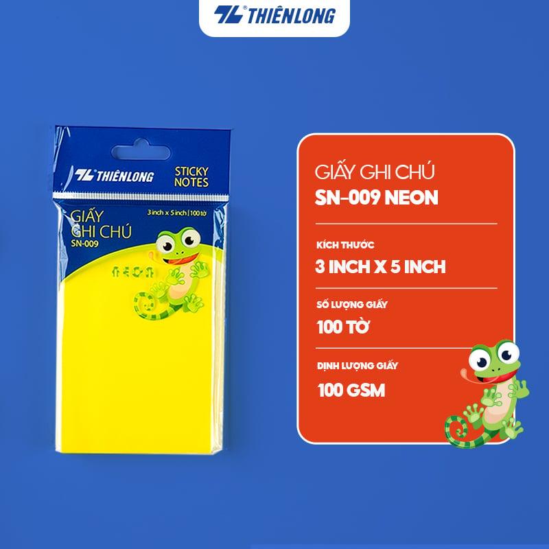 - Giấy ghi chú Neon Thiên Long gồm 100 tờ trong 1 xấp với định lượng giấy 100 gsm dày dặn hơn, có thể tháo dán và gỡ ra dễ dàng nhờ lớp keo mỏng.