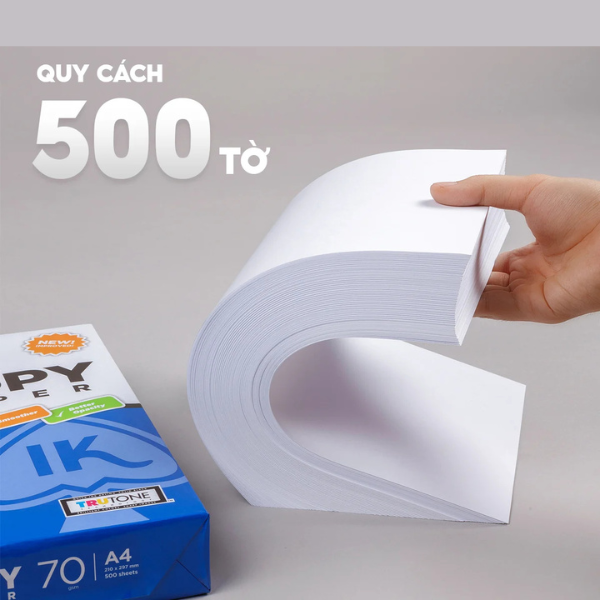 Giấy in A4, giấy photo IK Copy 70 gsm đều màu không gợn sóng, độ dày cao, chữ in không lem nhòe