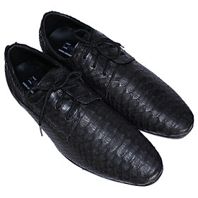 Giày tây nam Huy Hoàng da bò vân da trăn cột dây màu đen 7798
