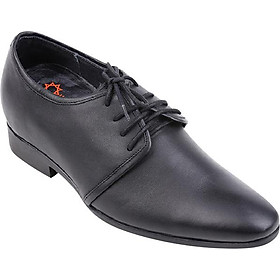 Giày tăng chiều cao Huy Hoàng da bò mũi nhọn cột dây màu đen 7189
