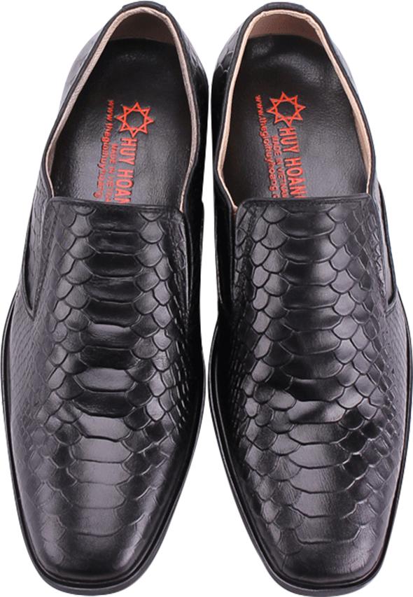 Giày nam Huy Hoàng da bò vân da trăn màu đen 7195