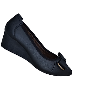 Giày đế xuồng 5cm da bò thật mũi nhọn màu đen