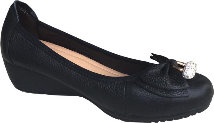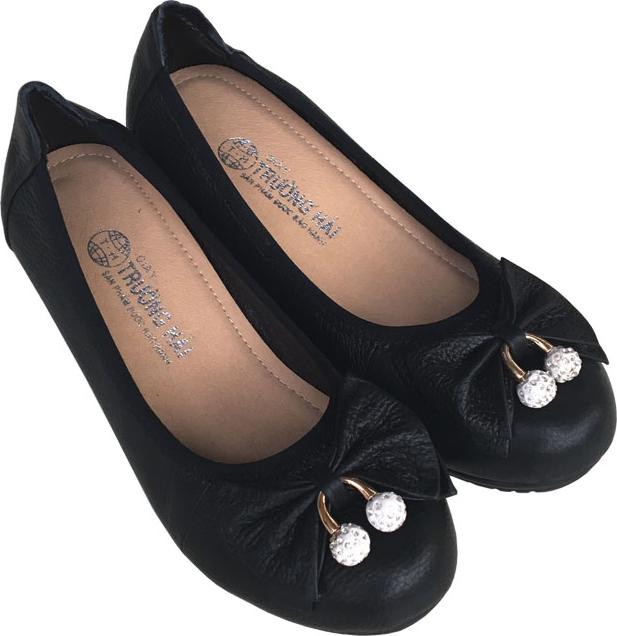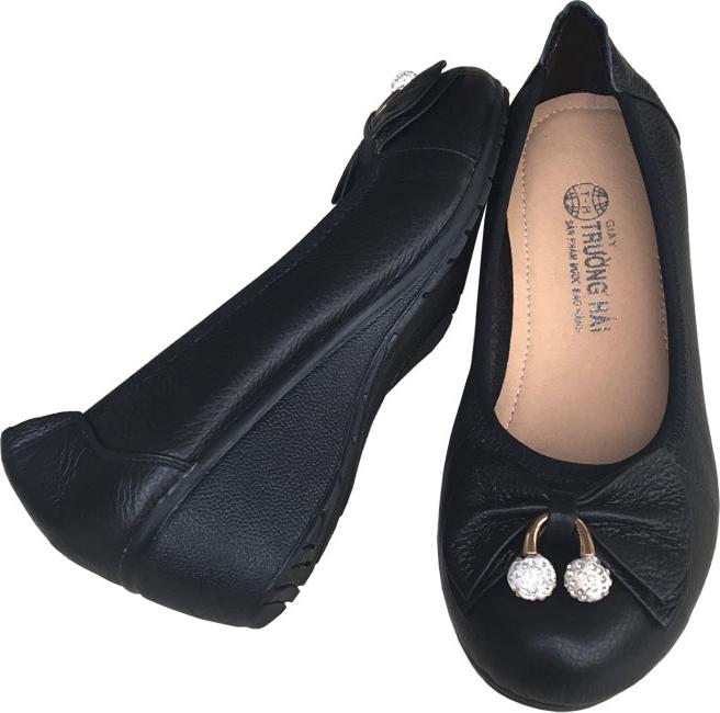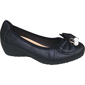 Giày đế xuồng 3cm đính nơ đen Trường Hải da bò thật