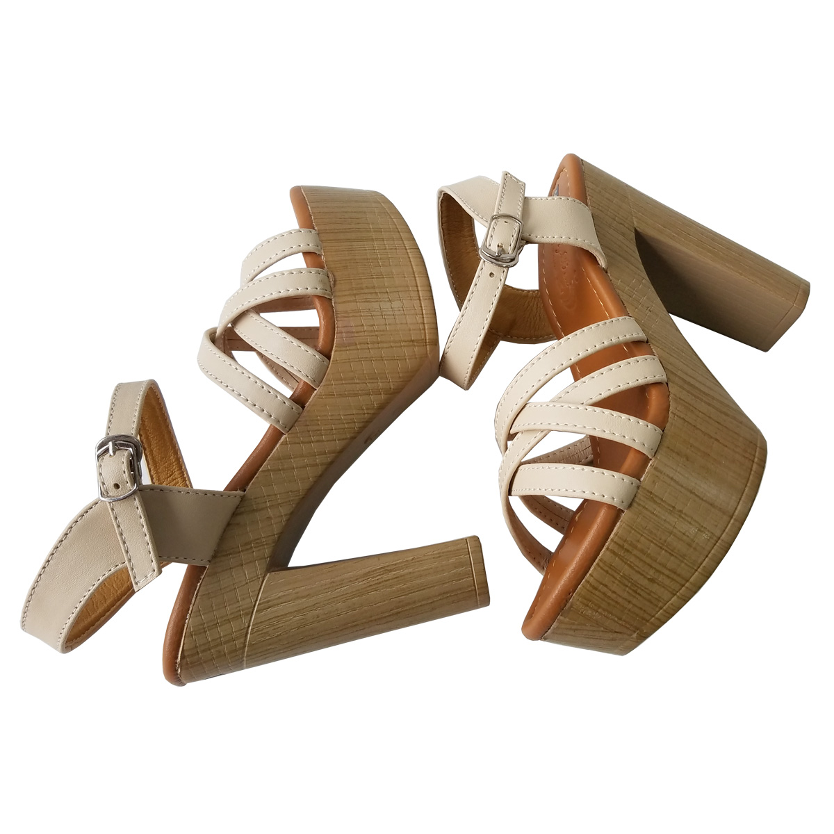 Dép xăng đan nữ đế vuông cao 5cm da bò thật