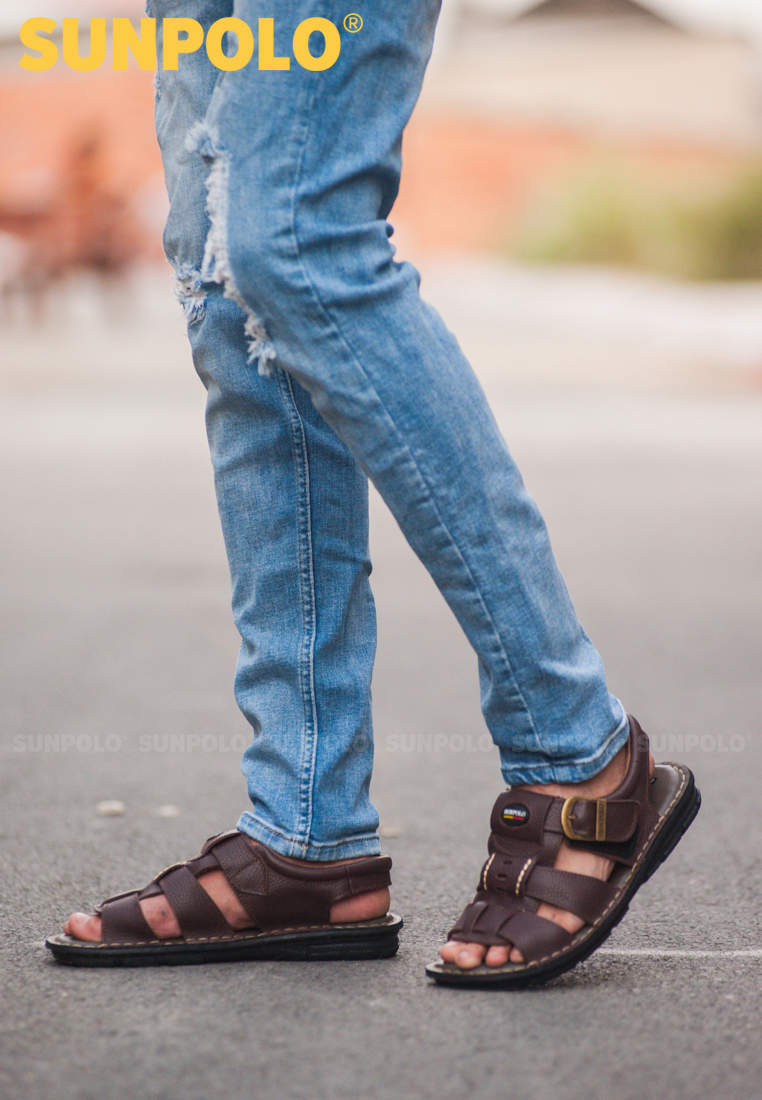 ✨Giày Sandal Nam Da Bò SUNPOLO SDA023 (Đen, Nâu)