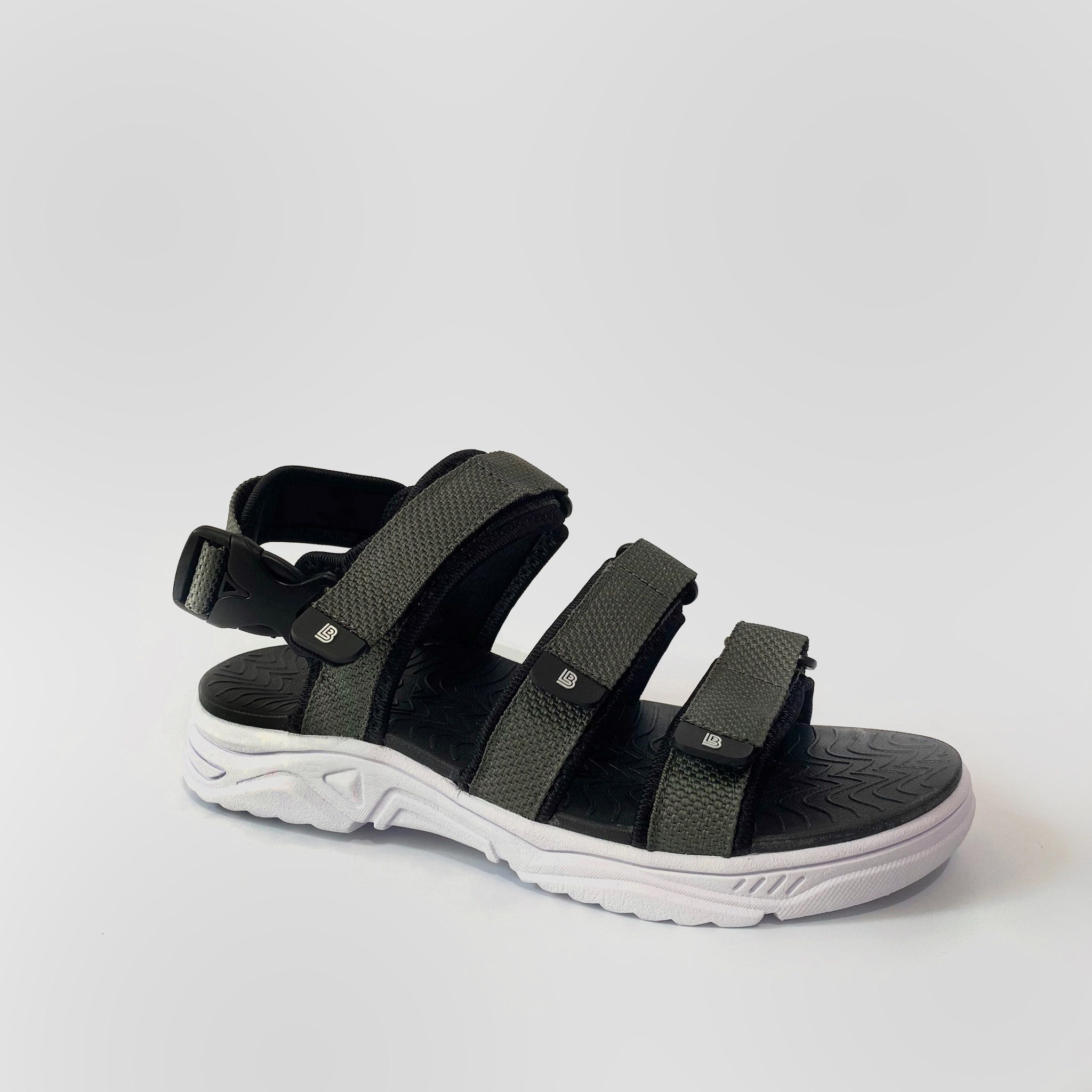 ✨Giày Sandal Nam The Bily 3 Quai Ngang - Đế Trắng Lót Đen Màu Xám BLDTMD04