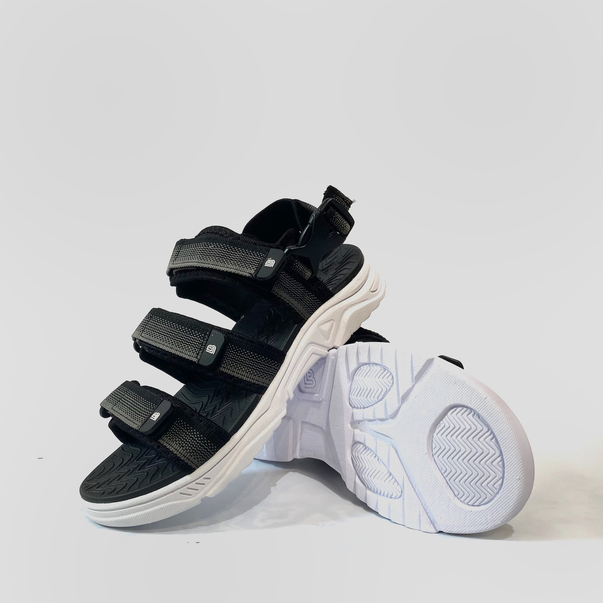 ✨Giày Sandal Nam The Bily 3 Quai Ngang - Đế Trắng Lót Đen Màu Xám Thổ Cẩm BLDTMD04