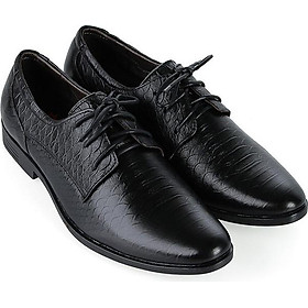 Giày tây nam Huy Hoàng da bò vân da trăn cột dây màu đen 7798