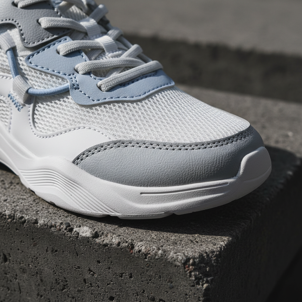 Tên sản phẩm: Giày thể thao thời trang unisex trắng xanh pastel 1. Thiết kế & Kiểu dáng - Phong cách hiện đại: Thiết kế trẻ trung, năng động phù hợp cả nam và nữ. - Tông màu trắng kết hợp xanh pastel mang lại cảm giác thanh thoát, dễ phối đồ. - Form dáng thể thao khỏe khoắn, phần mũi bo tròn và đường viền mềm mại giúp tôn dáng bàn chân. 2. Chất liệu & Cấu trúc - Upper (thân giày): Kết hợp vải lưới thoáng khí và da tổng hợp cao cấp, giúp giày nhẹ và thoải mái. - Đế giữa (Midsole): Làm từ EVA đàn hồi cao, hỗ trợ giảm chấn khi di chuyển. - Đế ngoài (Outsole): Cao su chống trượt với rãnh bám tốt, đảm bảo an toàn khi vận động. - Lót trong: Êm ái, thoáng khí, hạn chế mùi hôi khi mang lâu. 3. Công năng & Ứng dụng - Phù hợp cho nhiều hoạt động: đi học, đi làm, đi chơi, dạo phố hoặc thể thao nhẹ. - Trọng lượng nhẹ, tạo cảm giác thoải mái cả ngày. - Dễ phối với nhiều phong cách: quần jeans, váy thể thao, hoặc đồ streetwear. 4. Thông tin thêm - Màu sắc: Trắng – pastel. -