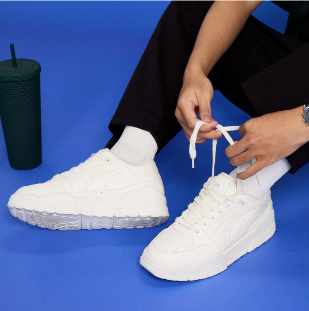 Giày Thể Thao Nam – Năng động & Cá tính - Thiết kế tối giản, hiện đại: • Tông trắng chủ đạo kết hợp logo xanh nổi bật bên hông – tạo điểm nhấn cá