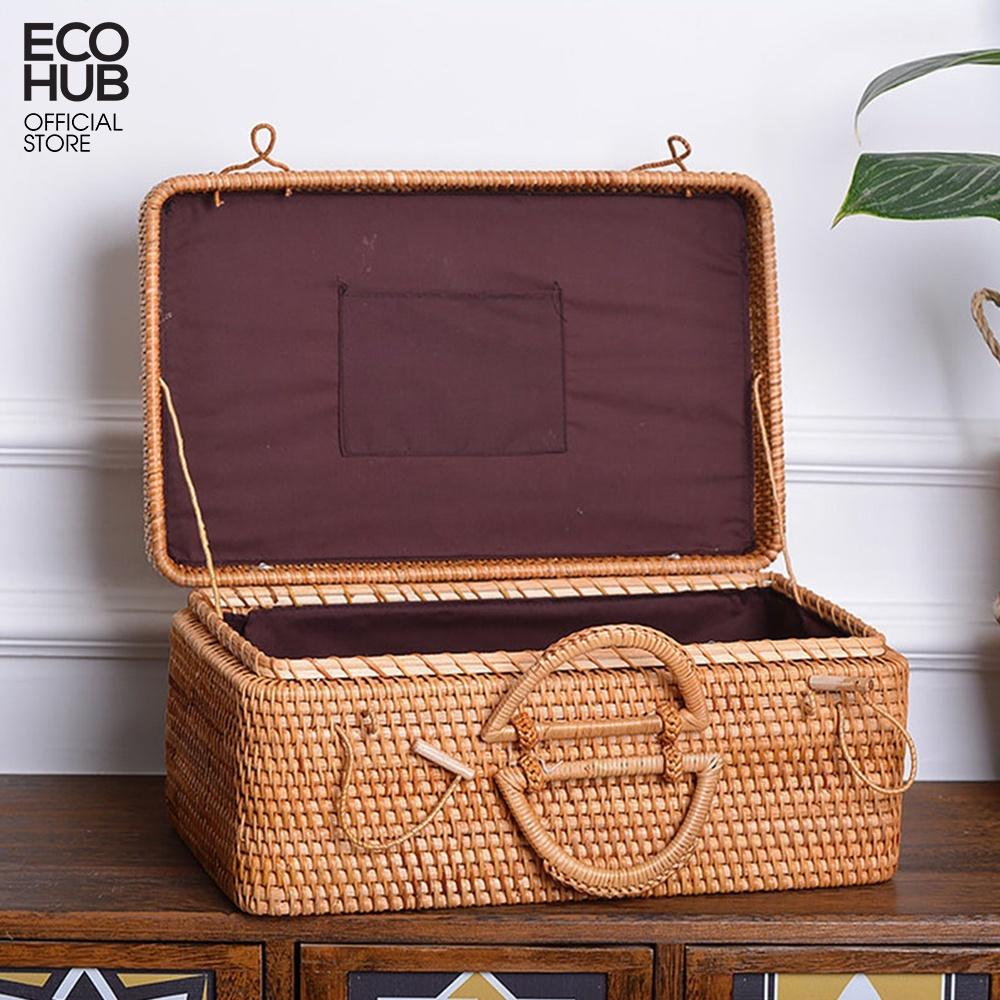 ✨Giỏ đựng đồ ECOHUB bằng mây có tay cầm du lịch, đựng đồ dã ngoại E00197