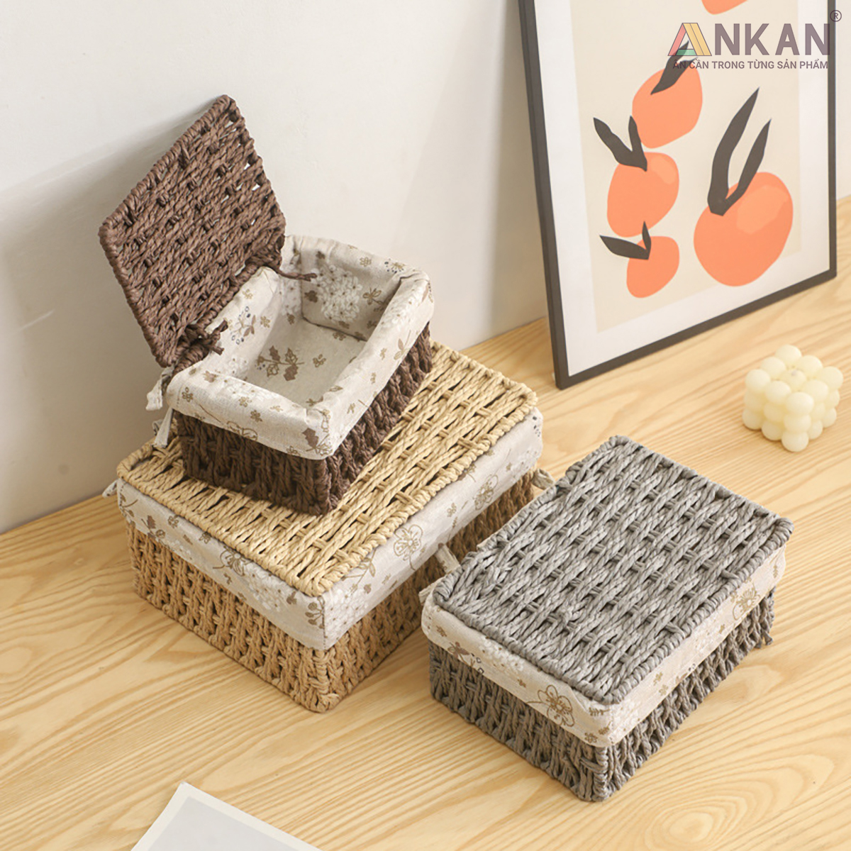✨Giỏ Mây Đựng Đồ Có Nắp ANKAN, Giỏ Đựng Đồ Ăn Vặt, Phù Hợp Các Phòng Spa, Khách Sạn Và Trang Trí Trong Nhà