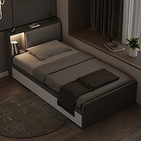 ✨Giường Gỗ Đơn Dài 1.2m Phối Đèn LED và 3 Ngăn Kéo Màu Vân Vải Phối Trắng SIB Decor GN15