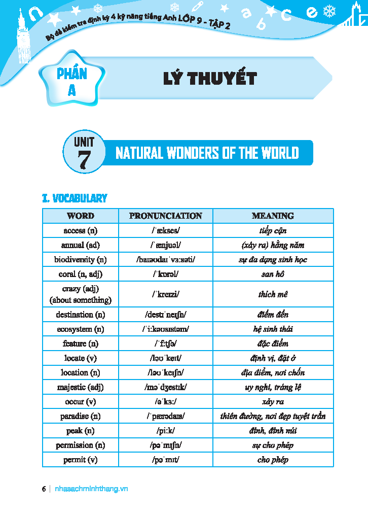 Gồm những kiến thức về từ vựng và ngữ pháp chi tiết của từng bài học giúp các em củng cố, nắm vững được các nội dung đã học và sẽ kiểm tra.