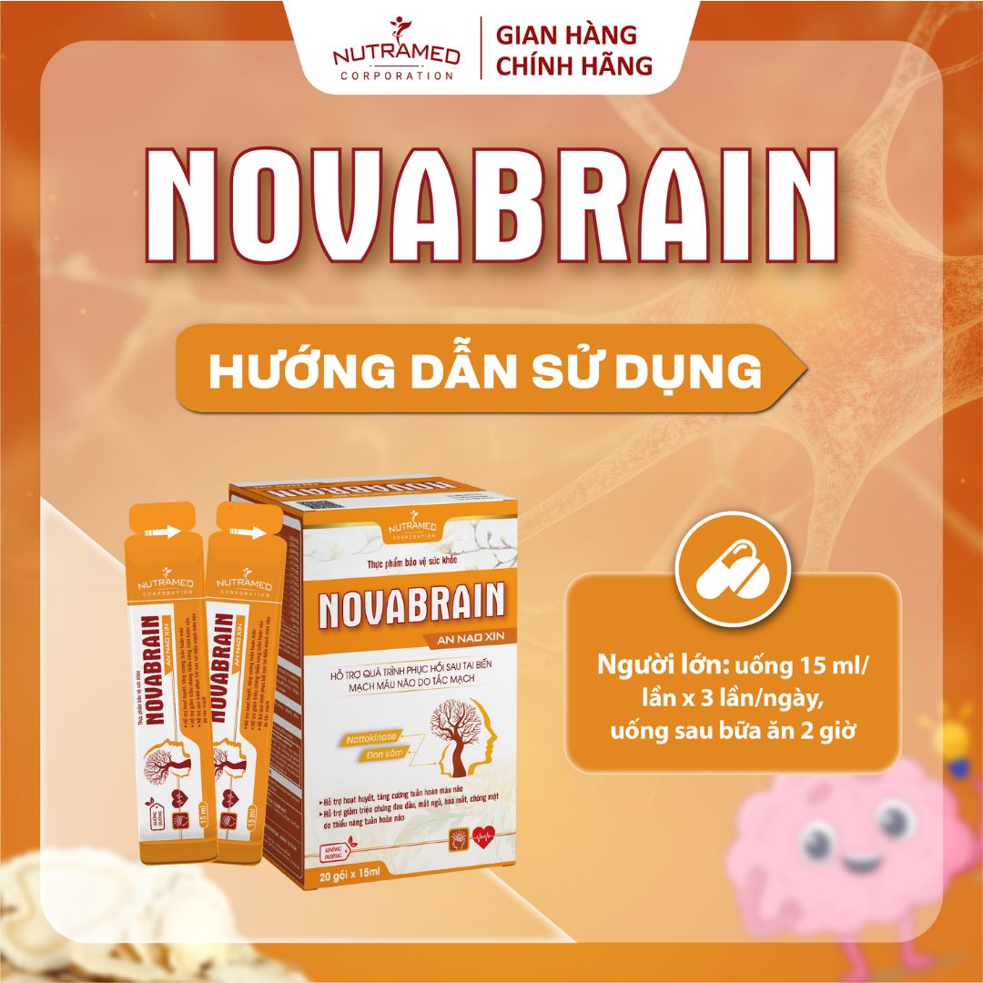NOVABRAIN - Hỗ trợ quá trình hồi phục sau tai biến mạch máu não do tắc mạch THÀNH PHẦN ️Hỗn hợp dịch chiết 7ml từ thảo mộc tương đương: Hoàng kỳ (Astragalus membranaceus), Đan