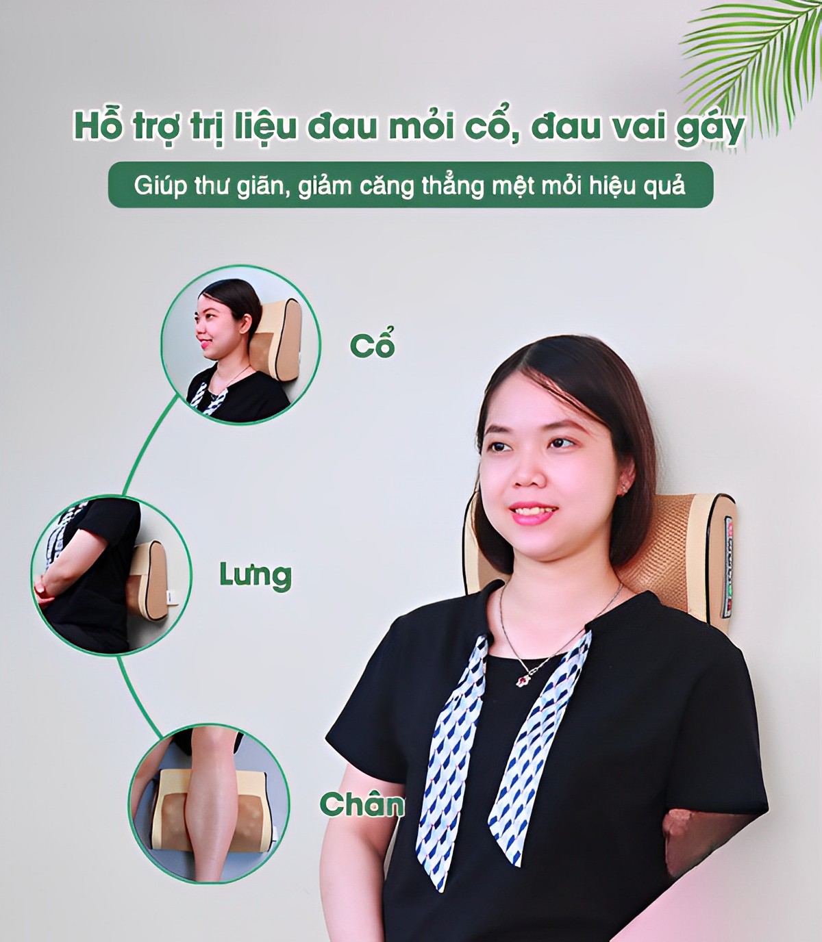 GỐI MASSAGE 8 BI HỒNG NGOẠI TRỊ LIỆU ĐAU MỎI VAI GÁY Còn gì tuyệt vời hơn khi sau mỗi ngày làm việc căng thẳng,mệt mỏi, đau lưng vai gáy được tựa mình trên chiếc