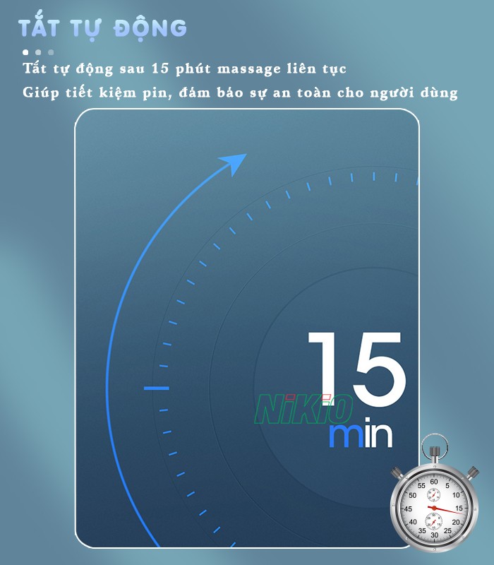 Tắt tự động sau 15 phút massage để tiết kiệm pin