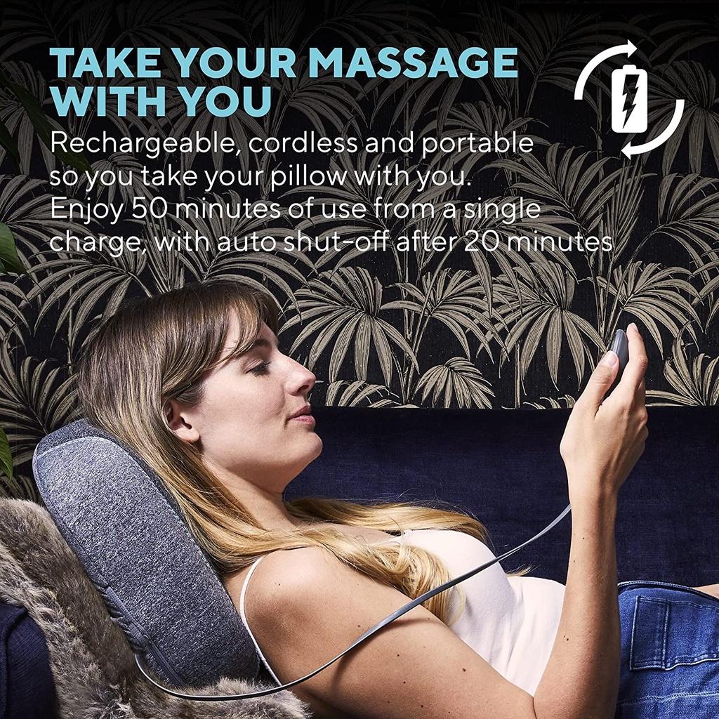 Tính năng - Gối massage không dây sử dụng pin sạc công nghệ cao thế hệ mới giúp bạn dễ dàng mang theo bất kỳ đâu - Tinh tế và nhẹ, chỉ nặng 2,2 kg,