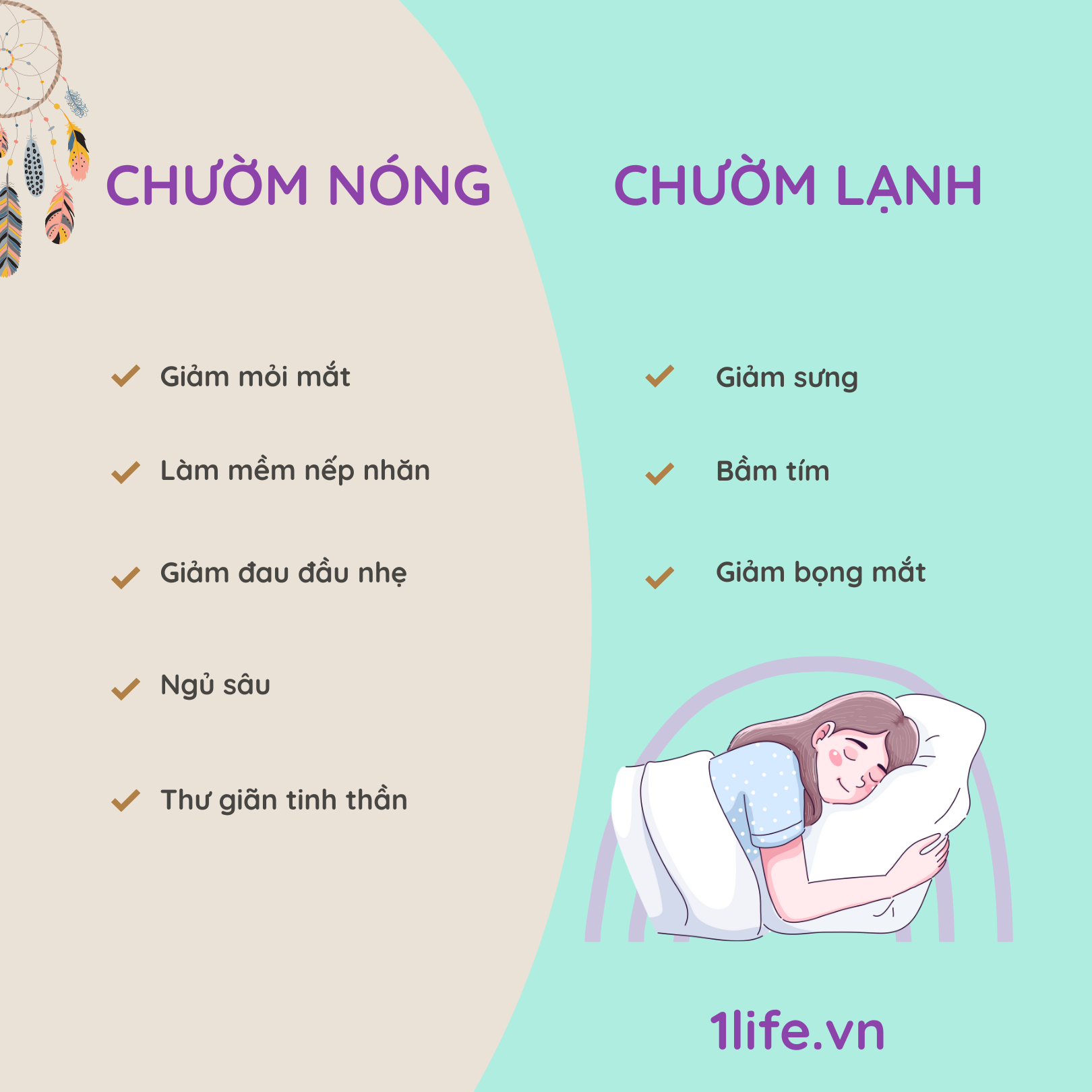 Gối Thảo Mộc Chườm Mắt Nóng Lạnh 1LIFE Công dụng Chườm nóng - Giảm mỏi mắt - Làm mềm nếp nhăn - Giảm đau đầu nhẹ - Ngủ sâu Chườm lạnh - Giảm sưng, bầm