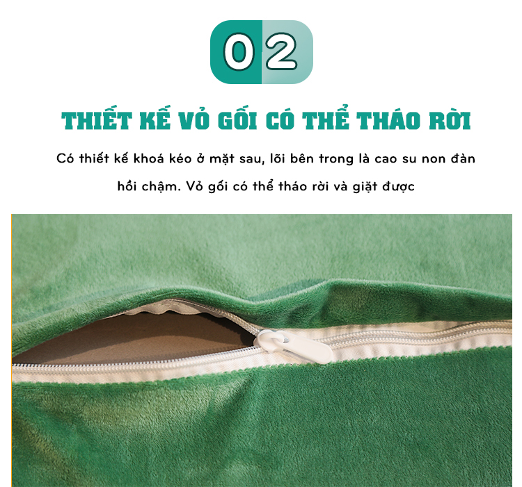 Thông tin sản phẩm: Sản xuất tại Việt Nam Chi tiết: Áo gối có dây kéo + Ruột gối (dễ vệ sinh khi áo gối bị bẩn) Kích thước: 35x50cm Thành phần: - Vải nhung sữa: 100%