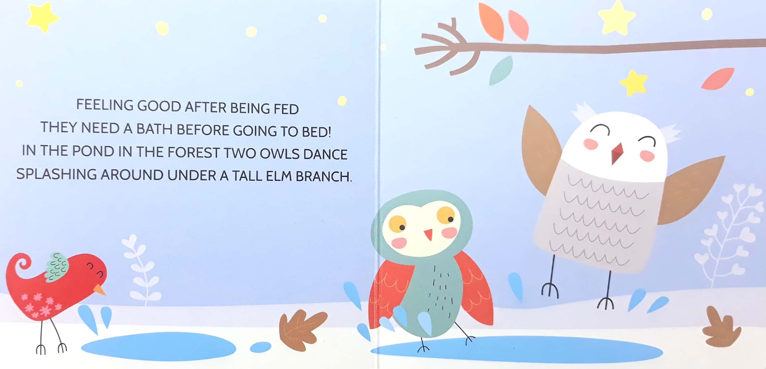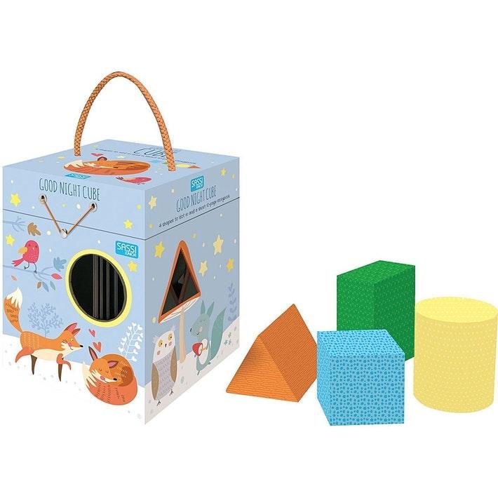 Night has fallen in the forest and it's time to get ready for bed! Turn the pages of the picture book to discover what the little animals get up to after dark! Learn to recognise the different shapes and work out where they fit into the cube. Have fun sorting the shapes and completing the pictures!
